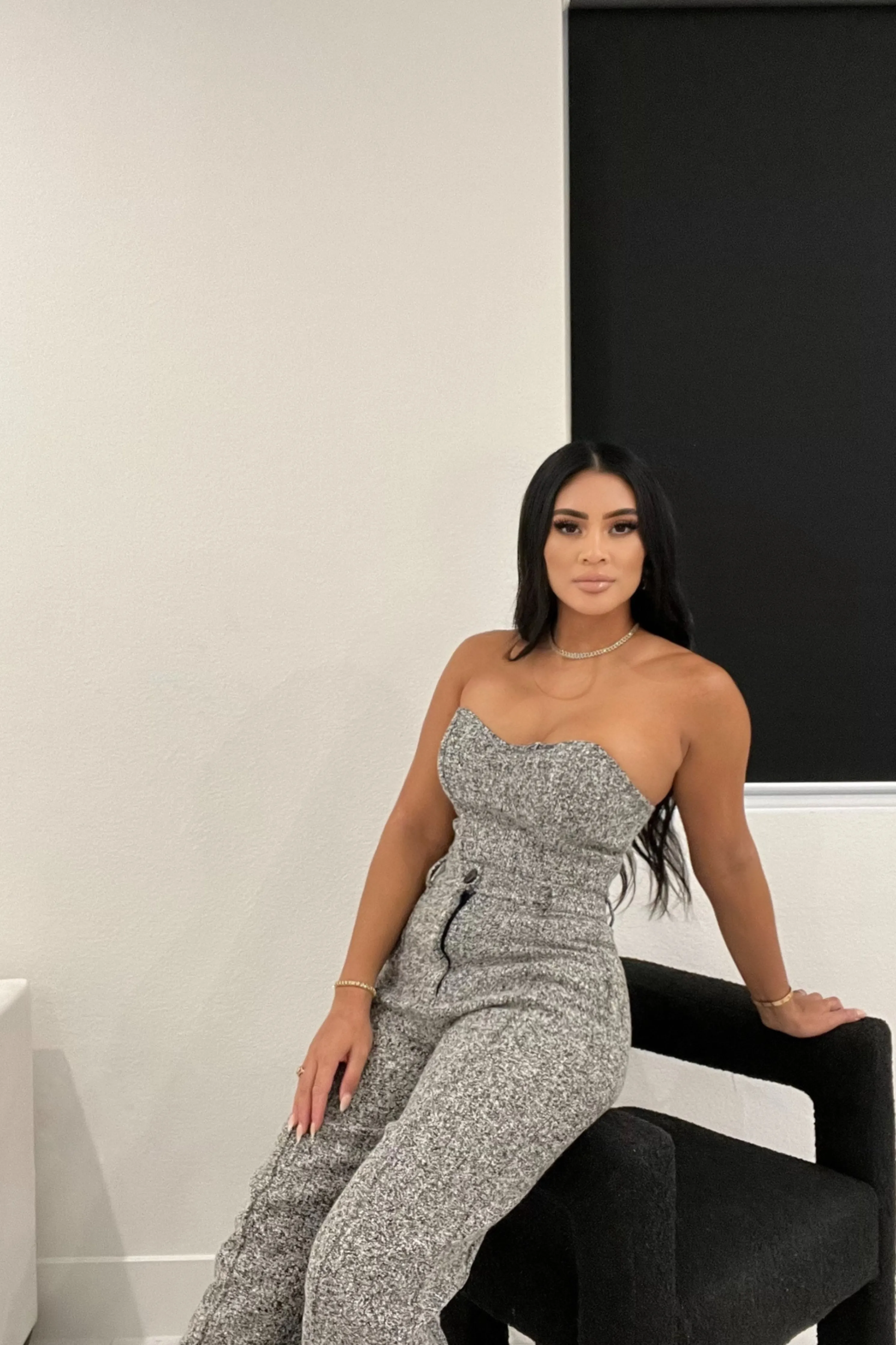 Femmewith a touch of sophistication inour Lt. Grey All You NeedTweedCorset. This strapless corset features a sweetheart neckline with padded underwired cups, boning throughout for structure support, and grip silicone at the bust for the secure hold. hook and eye closures. Fastened with hook and eye closures. Pair with our Stay Sharp Trousersand Savannah Belted Tweed Coat for the full look. No stretch. Lined interior.