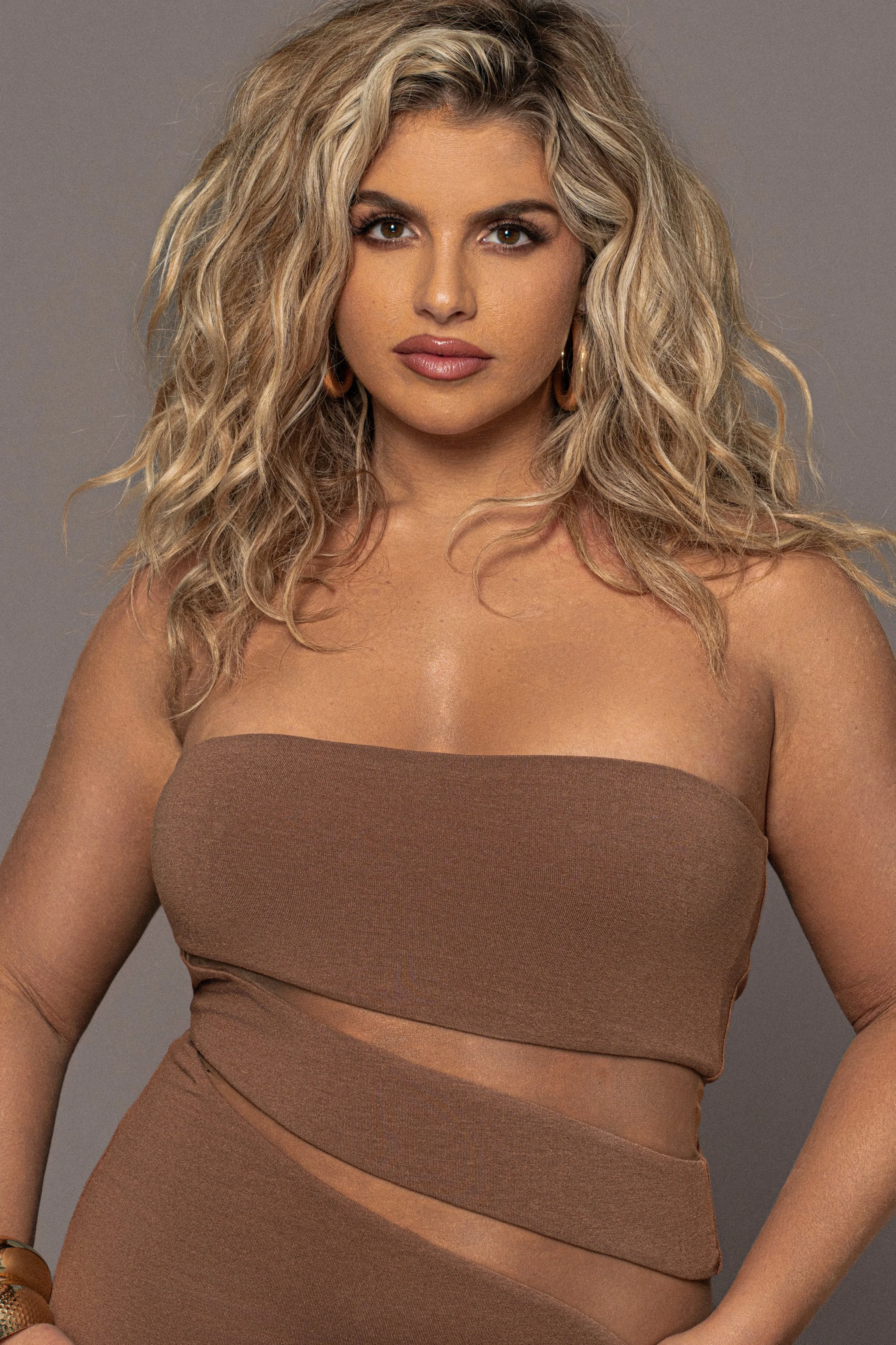 Bring sheer elegance to your next special occasion in our newPecan Unpredictable Dress. This fitted midi-dress features a strapless neckline with alluring sheer panels in asymmetric patterns creating the illusion of stylish cutouts. Crafted in our double-lined fabrication achieving an effortlessly sculpted fit with ultimate appeal. Stretchy.