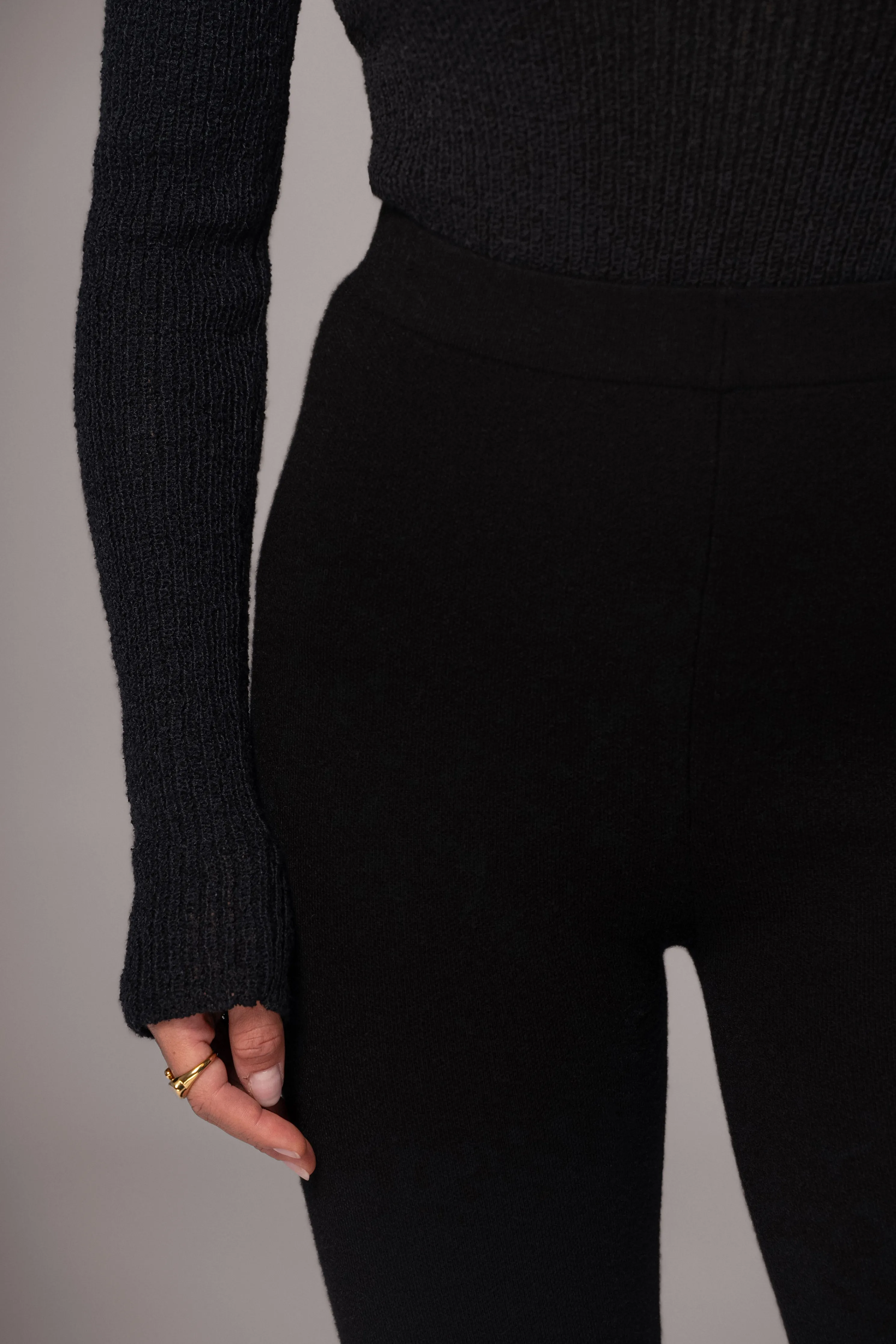 Embrace the first signs of Fall with our Black Effortless Knit Leggings. Made from ultra soft material with single-lining, these leggings come with a high waist and an elastic waistband ensuring both quality and comfort. Stretchy.