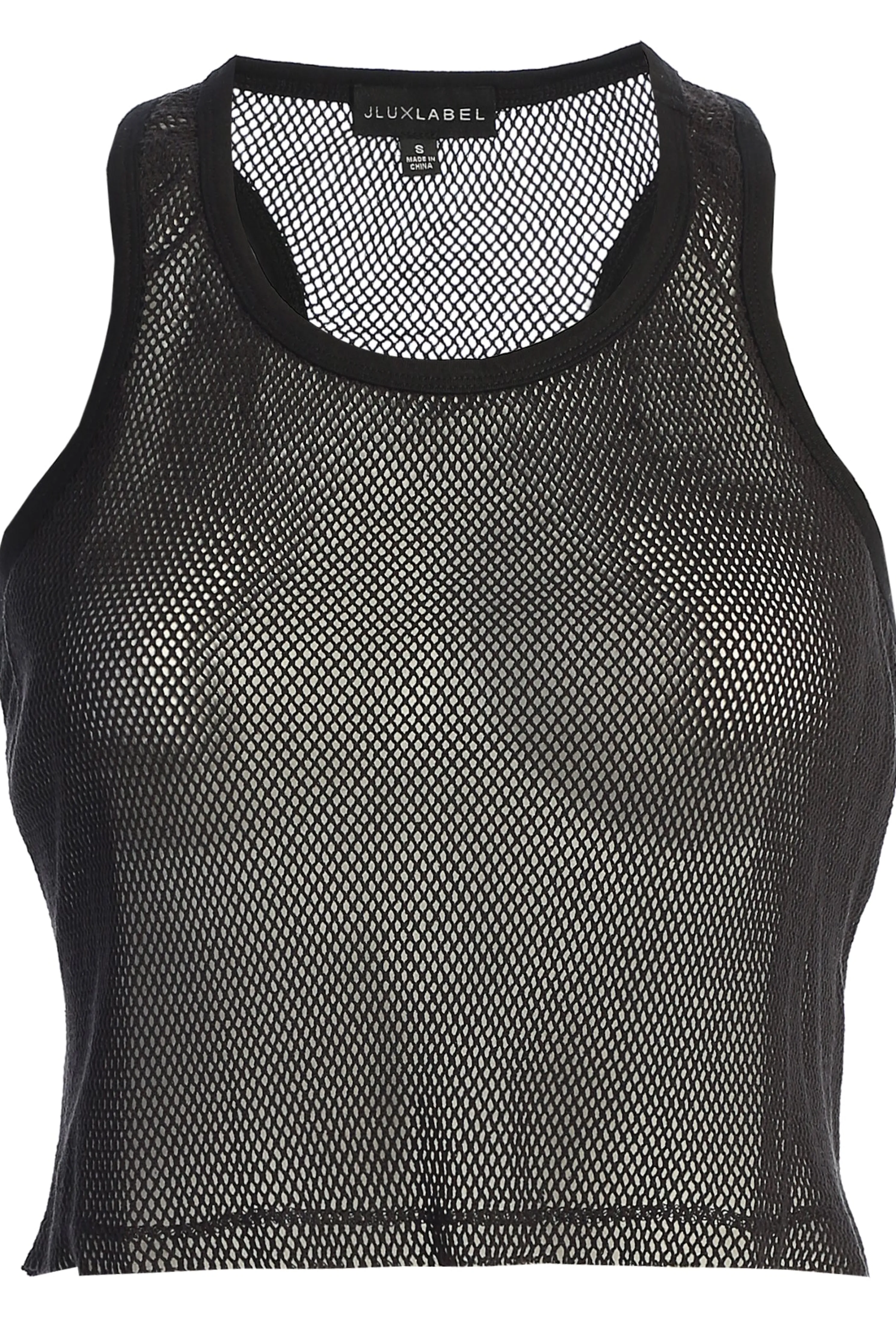 The Black Fishnet Crop Tank is a summer staple that never goes out of style! Crafted in a fishnet-inspired mesh, this trendy crop top features a scoop neckline, tank shoulders, and a cropped waist withfrayed hem. Pair with our Golden Touch Sarong for the full look. Stretchy.