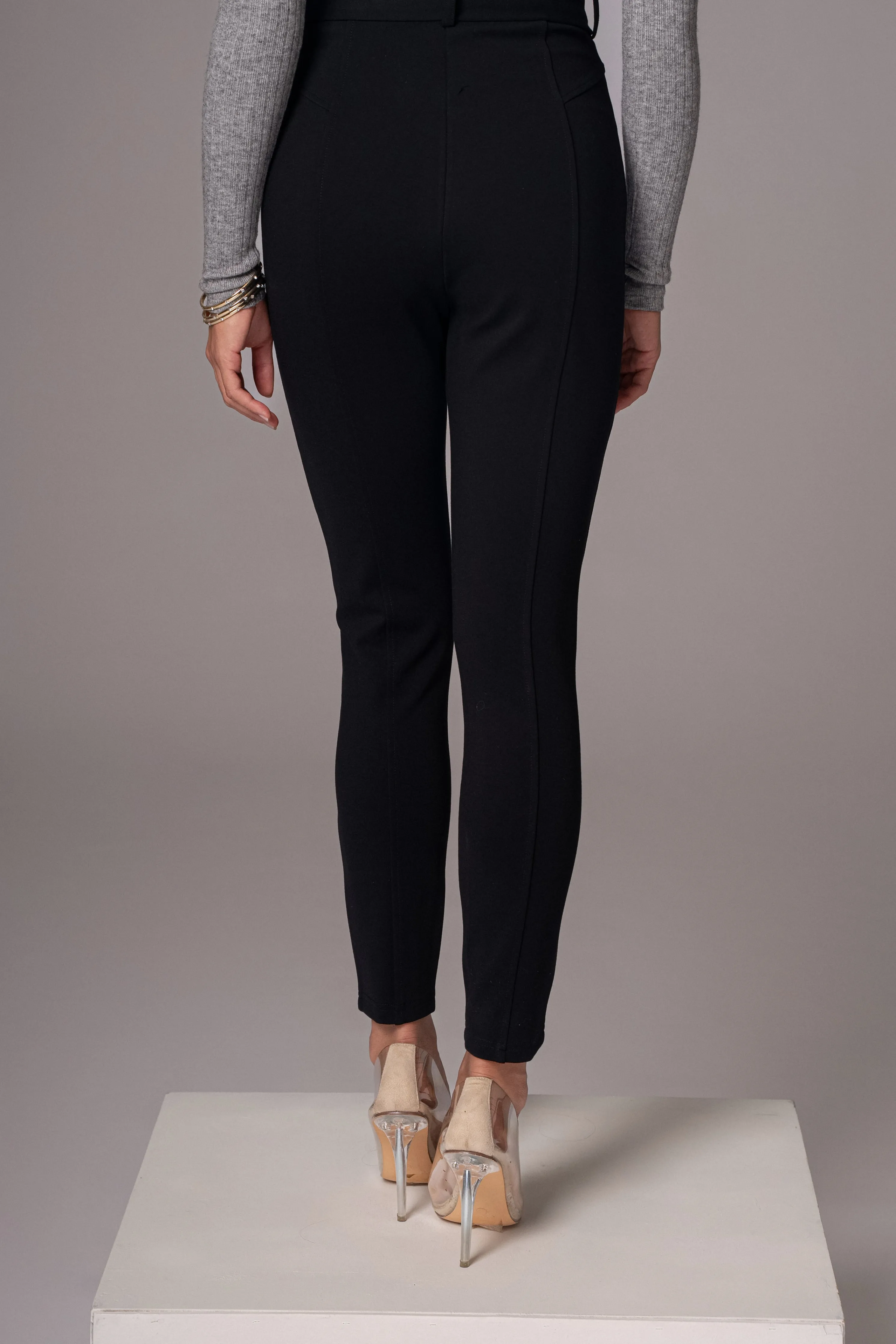 Our timeless original pieces reimagined for today in the JAIDE Collection. Rediscover the allure of classic elegance with our Black Golden Buckled Pants. Featuring a high waist with a front fly zipper and a matching belt adorned with a luxurious gold-tone buckle. Crafted in a single lined fabric, these pants offer both exceptional quality and comfort. Pair with ourPegasus Chain Bodysuit for the full look. Minimal stretch.