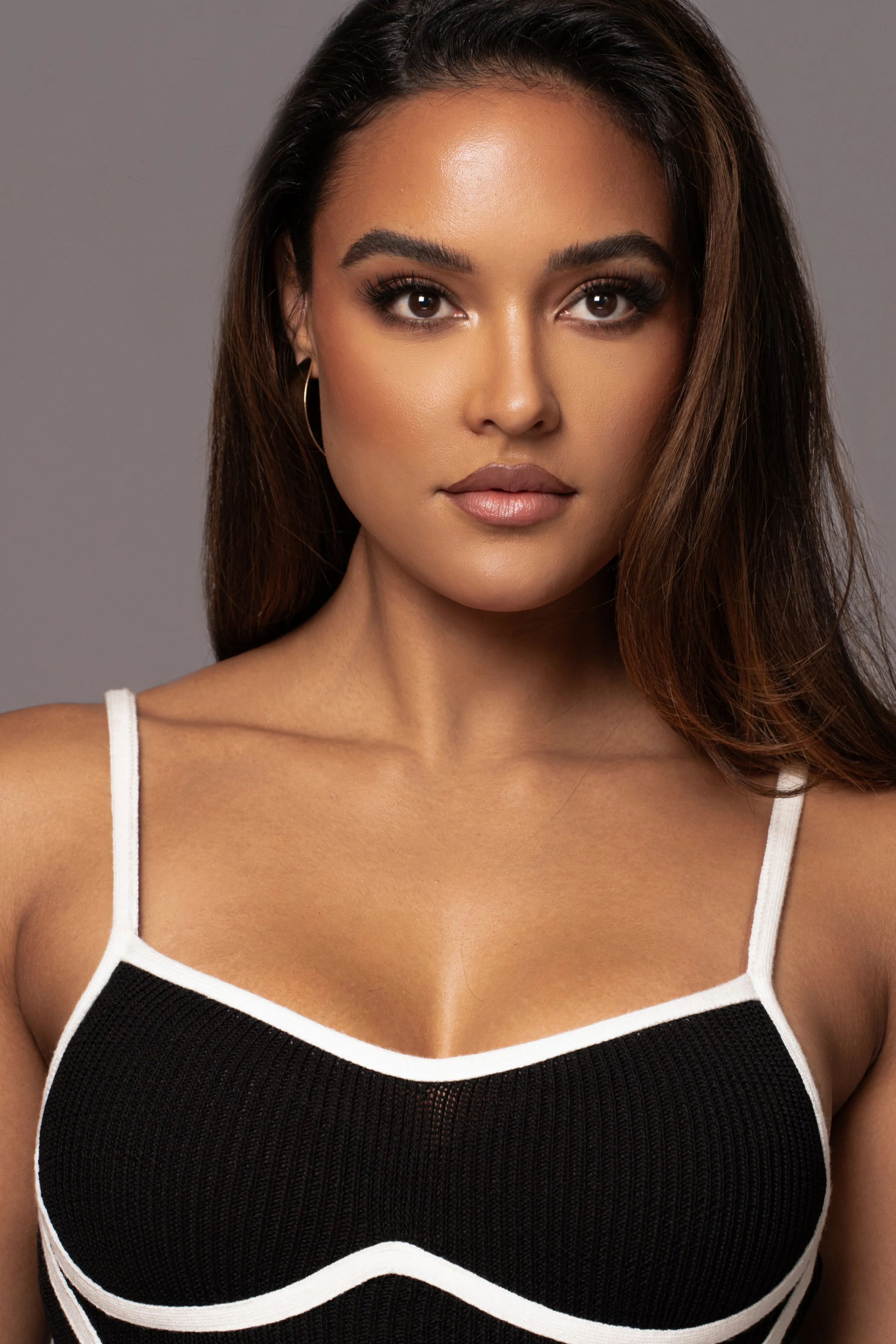 Elevate your wardrobe with the timeless beauty of the Black Model Citizen Knit Midi Dress. Crafted from a lightweight, single-lined knit and detailed with contrast seam detail, this elegant midi dress is designed with adjustable shoulder straps and a fitted silhouette. The perfect addition to any Fall wardrobe. Stretchy.