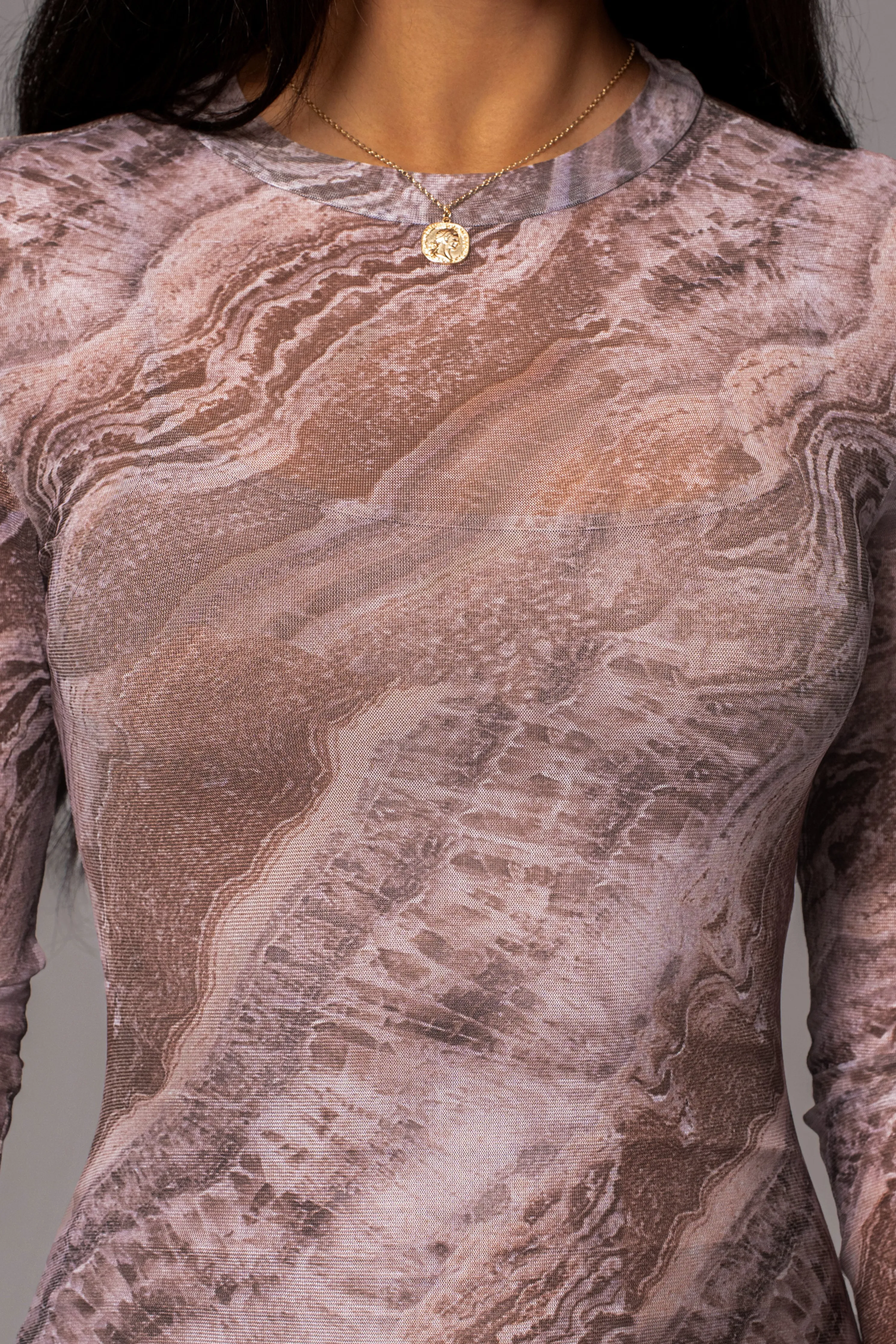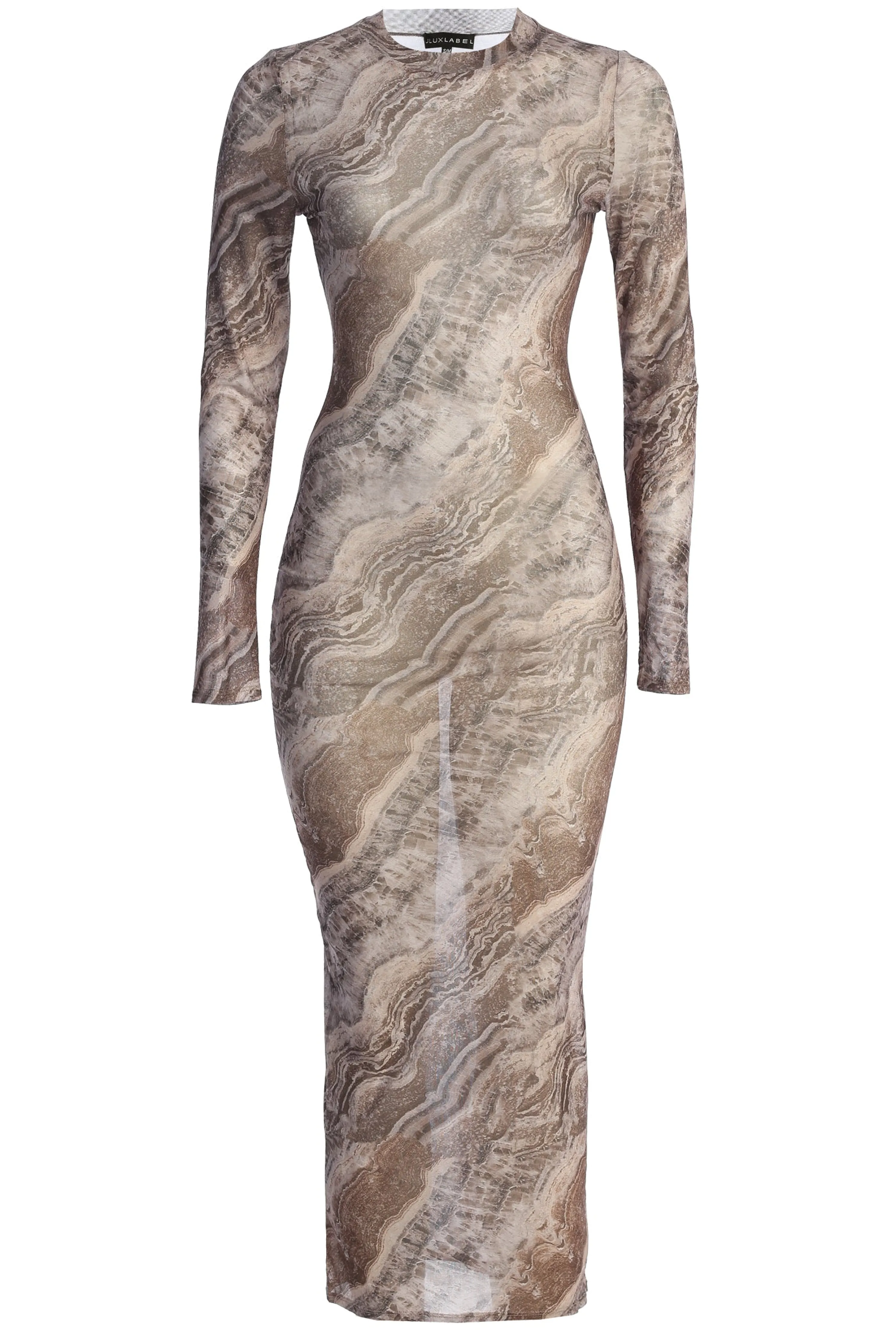 Look your most sophisticated in theBrown Multi Solana Mesh Maxi Dress. This elegant maxi dress is cut from sheer mesh and features long sleeves and a beautiful multi color print enhancing its overall design. Complete with an underlining nude dress for seamless coverage. Stretchy. Double Lined.