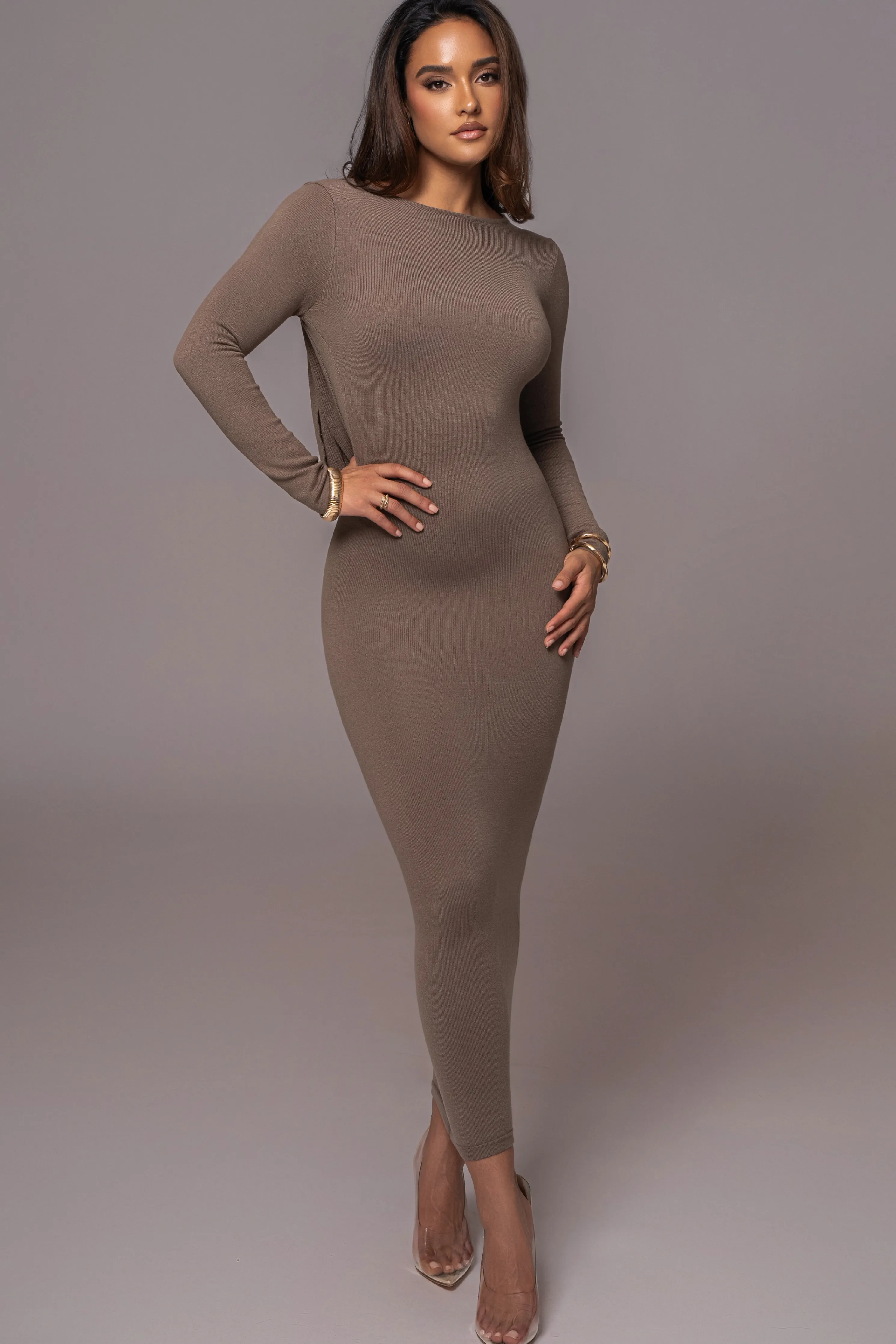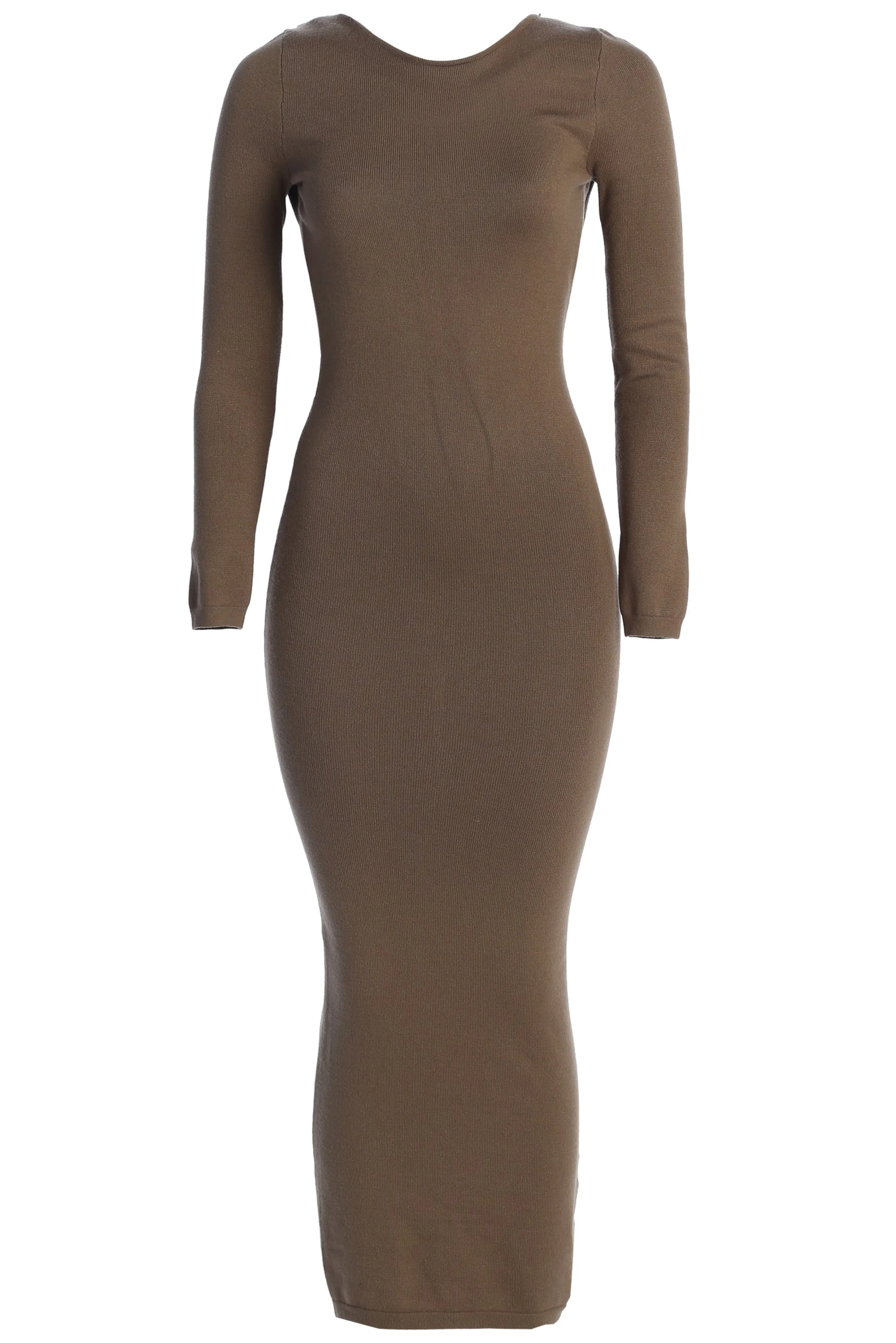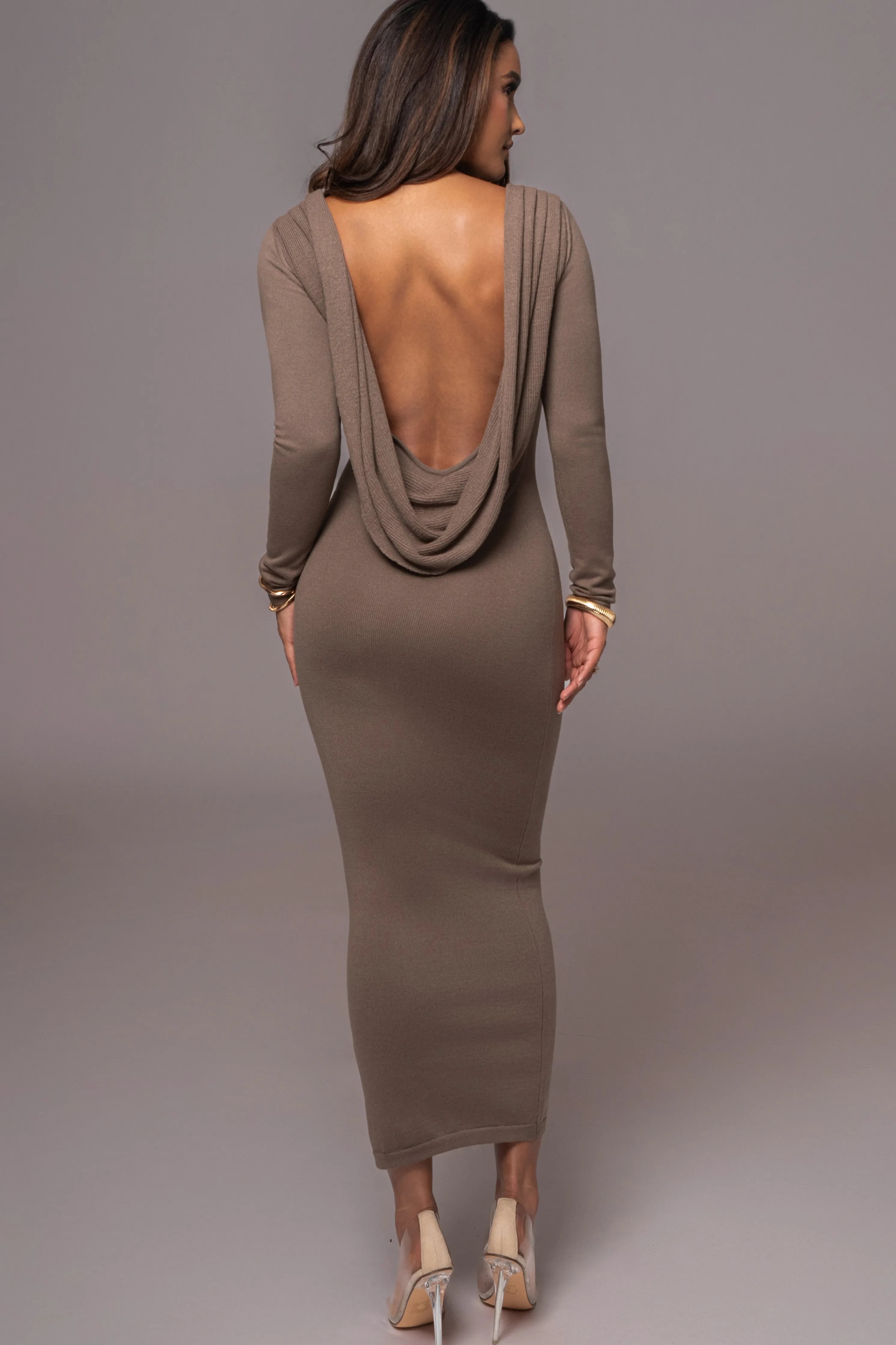 Step out in sophisticated style with our Deep Olive Heavenly Knit Maxi Dress. Crafted with expert attention to detail, this midi dress showcases a stunning draped cowl back with long sleeves and a midi hem lending a classic and tasteful look. Single lined. Stretchy.