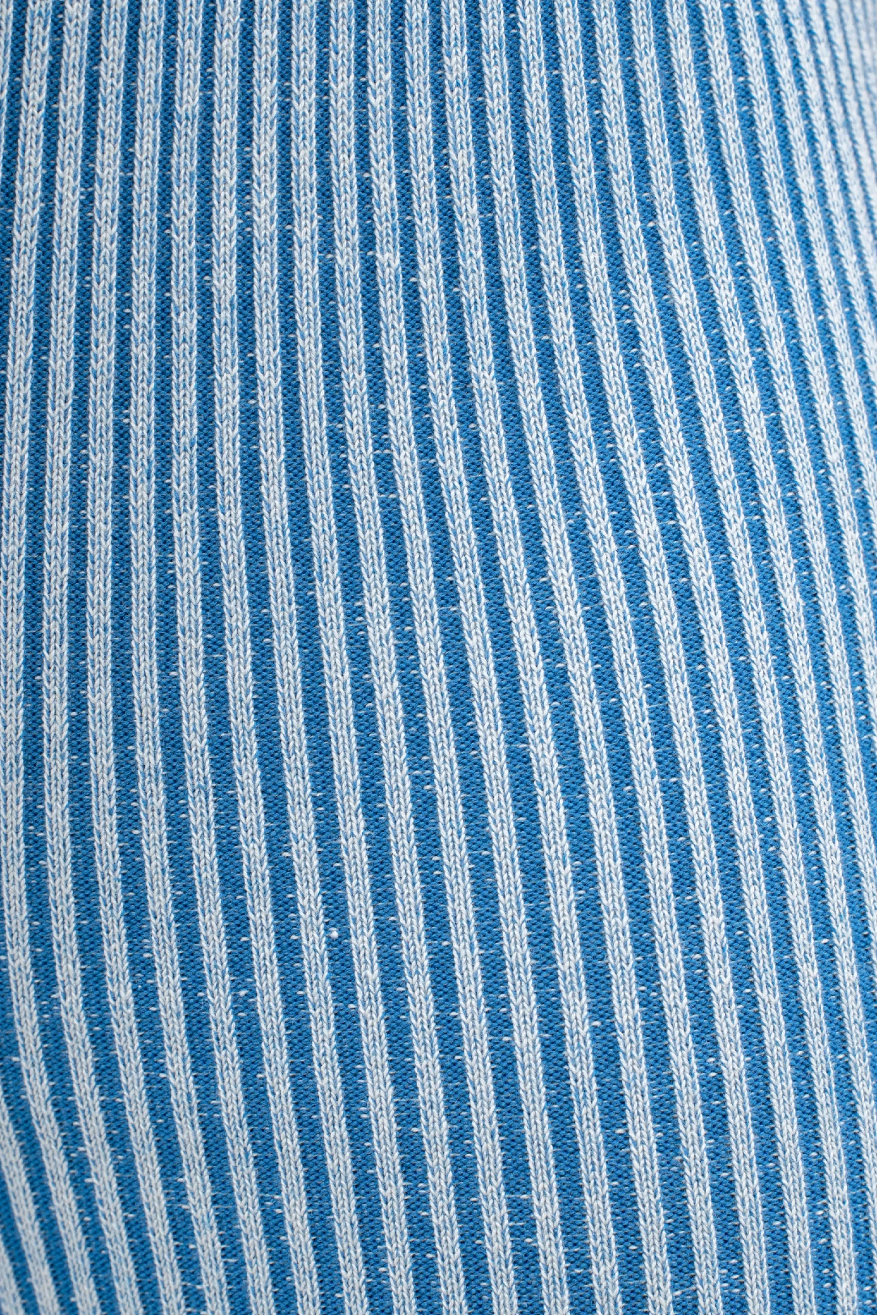 Both stylish and edgy in the Denim/White Deana Ribbed Bodysuit, now redesigned with our new and improved ultra-soft, knit fabric. This bodysuit highlights a squared neckline, tank shoulder straps, and a cutout back with lace up ties. Complete with a thong back and bottom snap closures. Pair with our Over The Top Skirt for the full look. Stretchy.