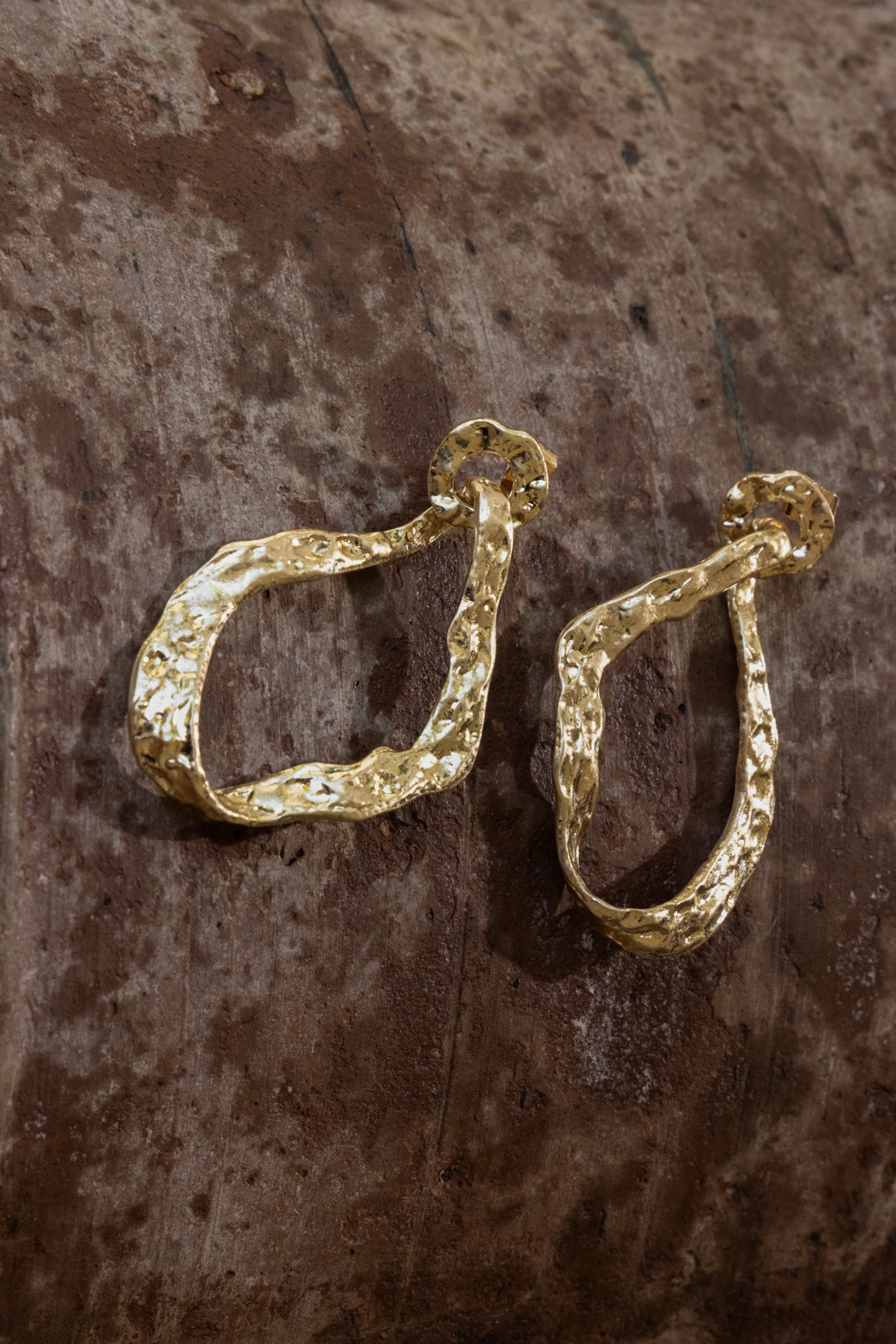 Transform your look with our Gold Changing Tides Earrings. These exquisite earrings feature an oval-like design with texture, elevating any outfit to the height of luxury. Push back closure.