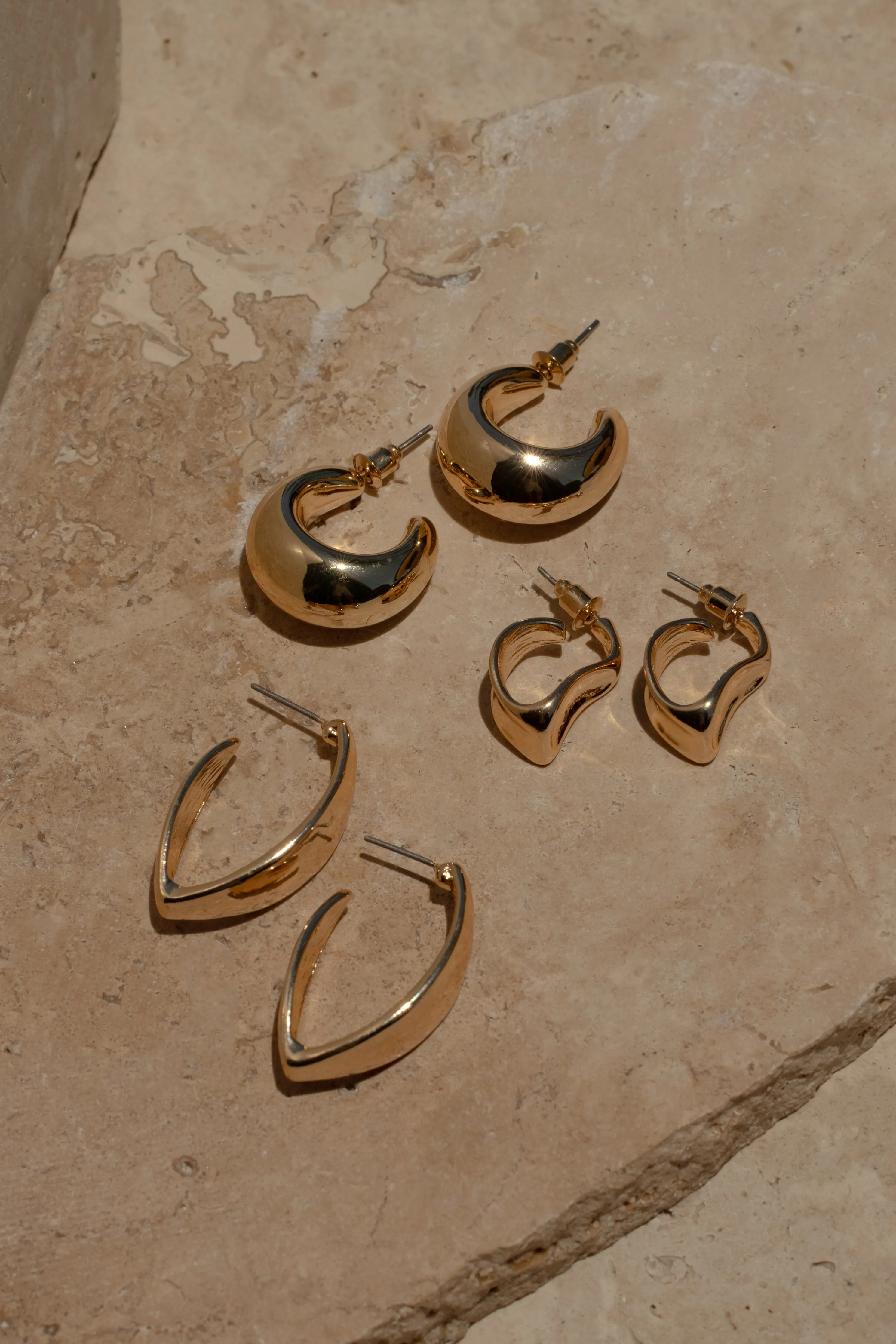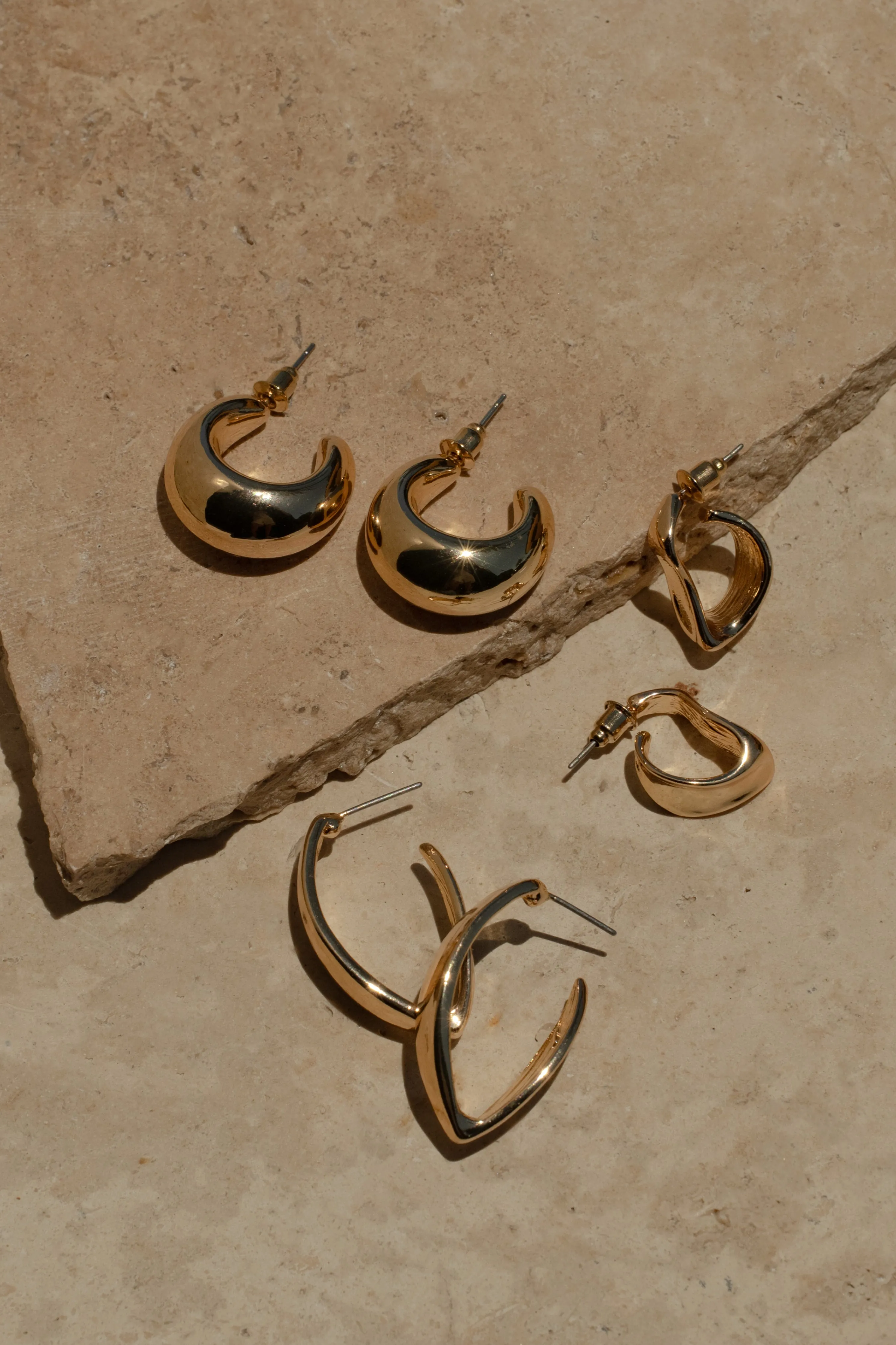 Add classic shine to your days with our Gold Layla Earring Set. This gold-tone earring set features three pairs of hoop earrings in different designs ensuring you never run out of shine. Push back closure. Sold as set.