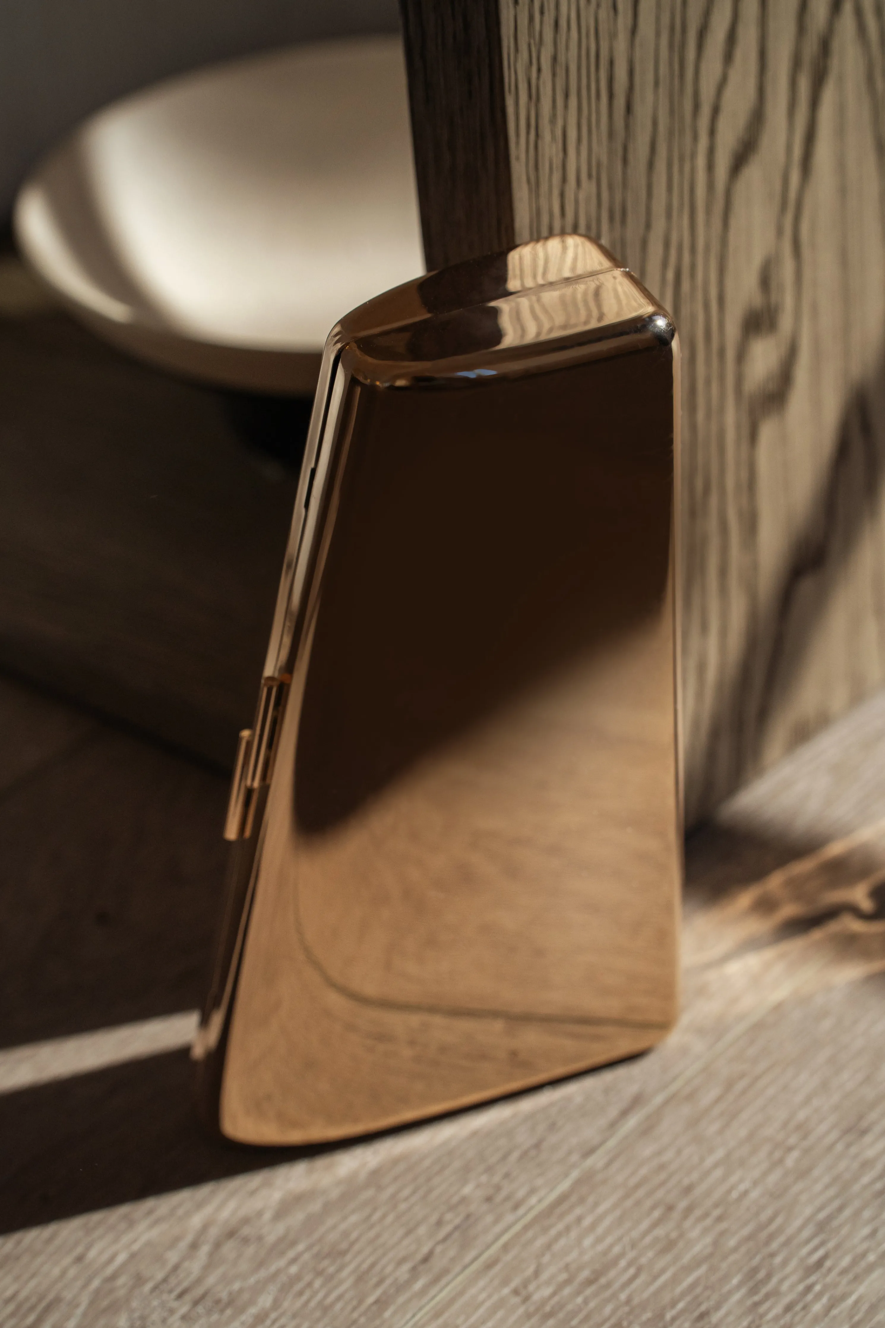 Indulge in luxury with our Gold Sasha Clutch. Its stylish geometric shape with top clasp closure and removable crossbody chain strap make it the perfect accessory for any occasion. Gold-tone hardware. Lined interior.