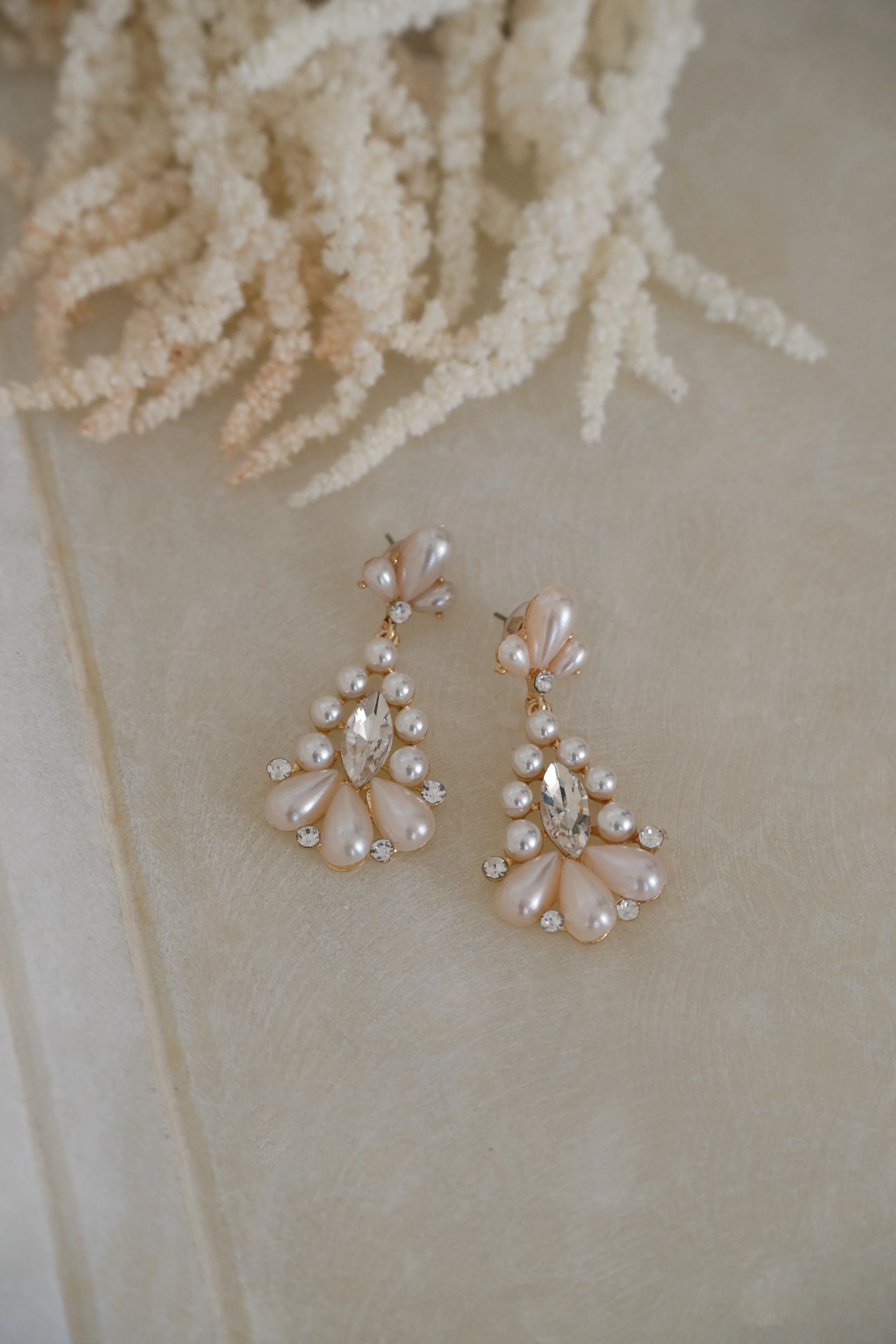 Our Gold Say I Do Pearl Earrings are made for your big day. These beautiful dangle earrings feature captivating pearls with a center crystal and push back closure. Perfect for any special occasion.