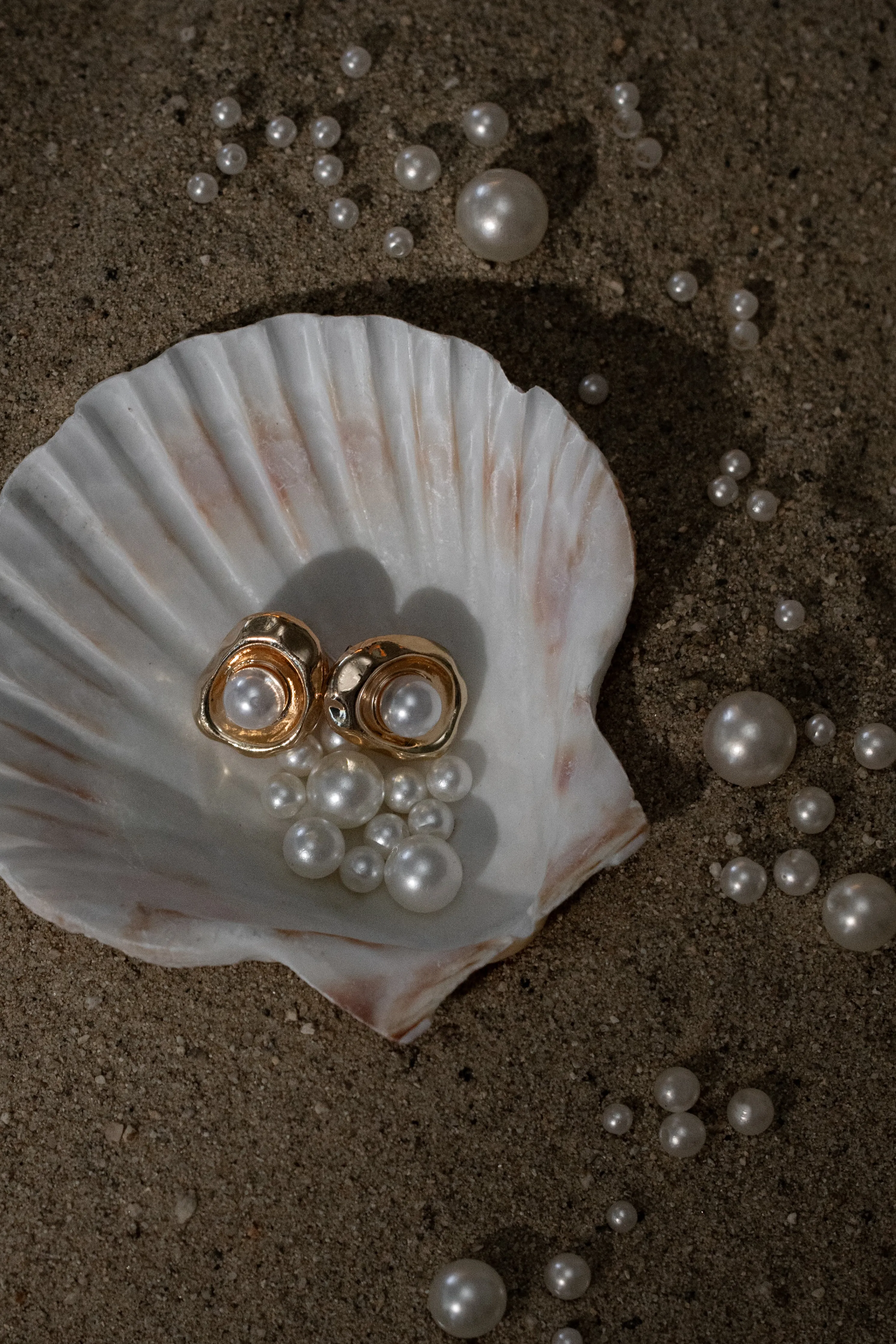 Enhance your summer glow with our Gold Shoreline Earring Set. This elegant earring set features 3 pairs of pearl stud designs with a gold tone finish. Sold as set.