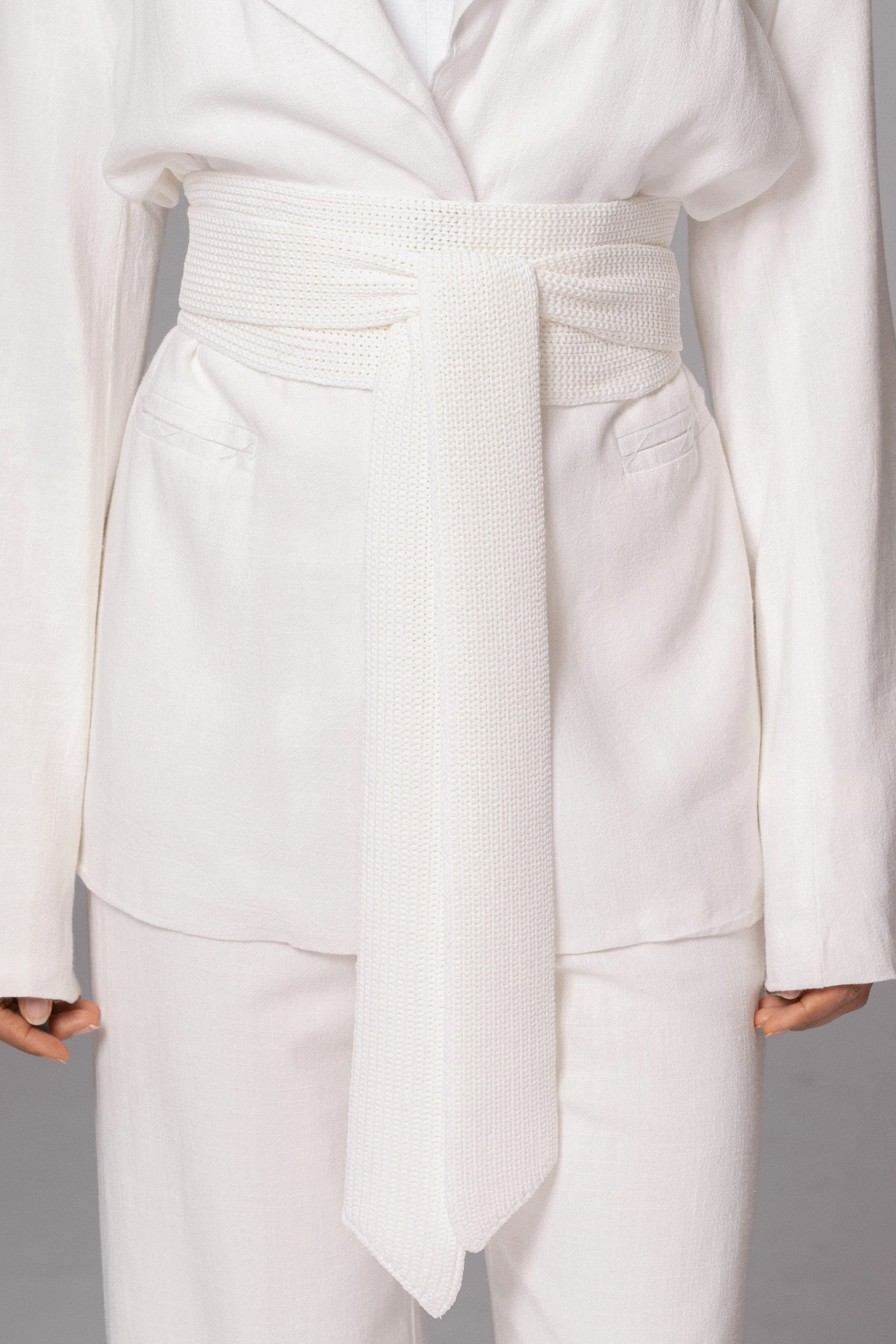 Indulge in the effortless luxury of our Ivory Lagos Knit Belt. Crafted with a knitted fabric, this versatile belt wraps flawlessly around your waist, creating a draped, sophisticated finish to elevate any ensemble. Stretchy.