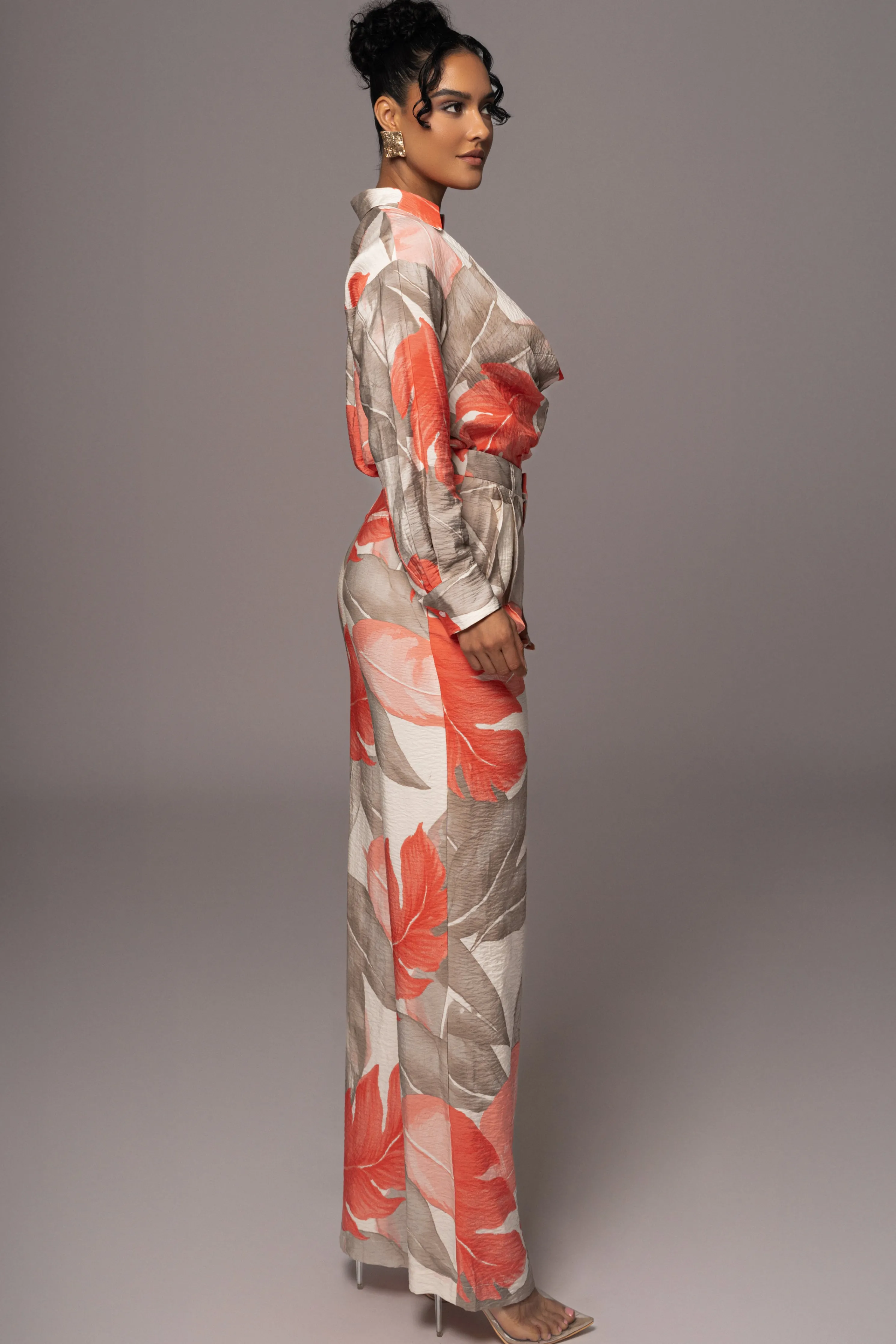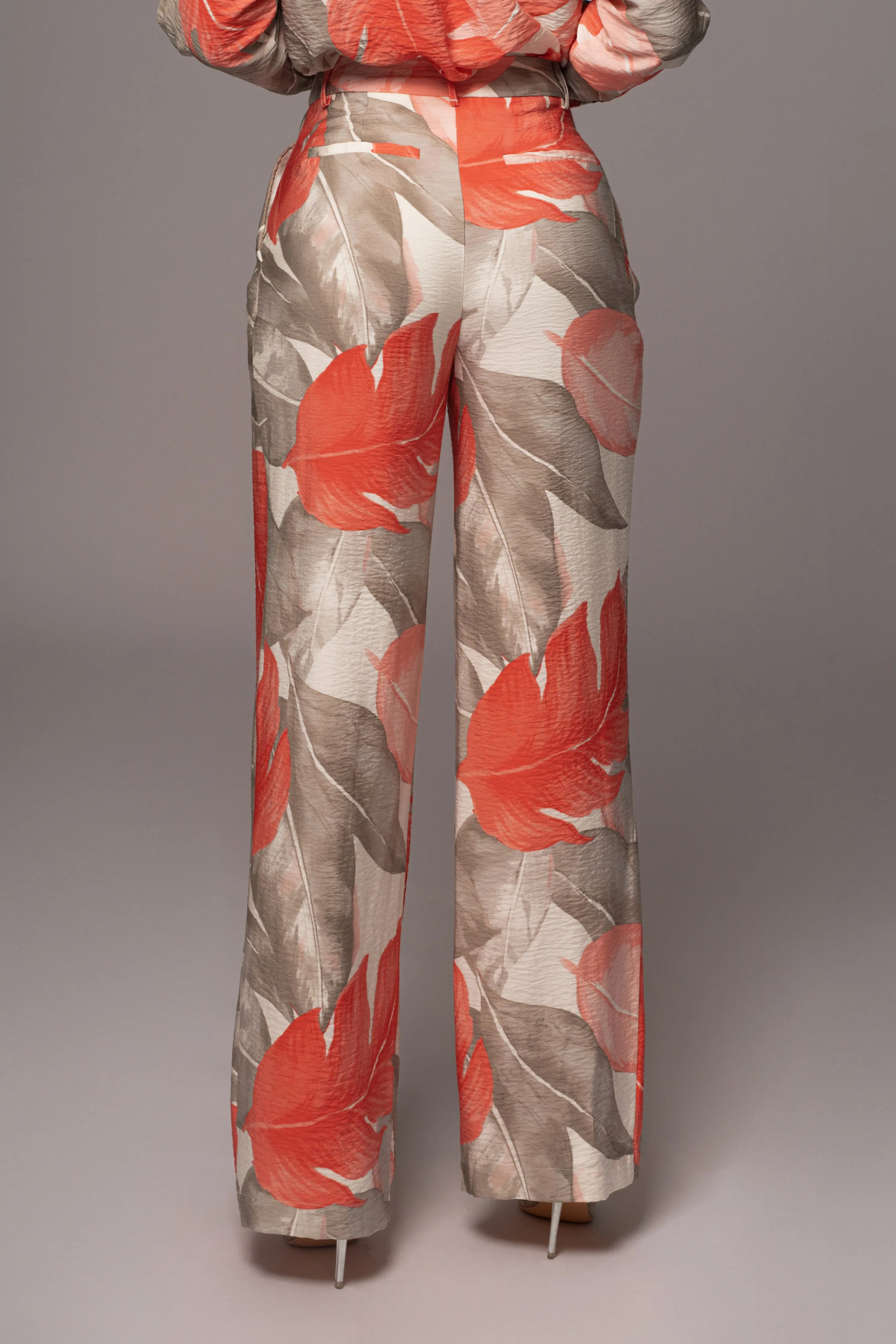 Bring on Summer with our Ivory Palm Print Drew Crinkled Trousers. These straight-leg trousers are made from lightweight, crinkled fabric in a tropical floral print adding a delicate summer touch. Featuring front pleating with a clasp and zipper closure, functional side pockets, belt loops, and faux welt pockets. Pair with our Greta Collared Top for the full look. Internal waist button. Lined interior. No stretch.