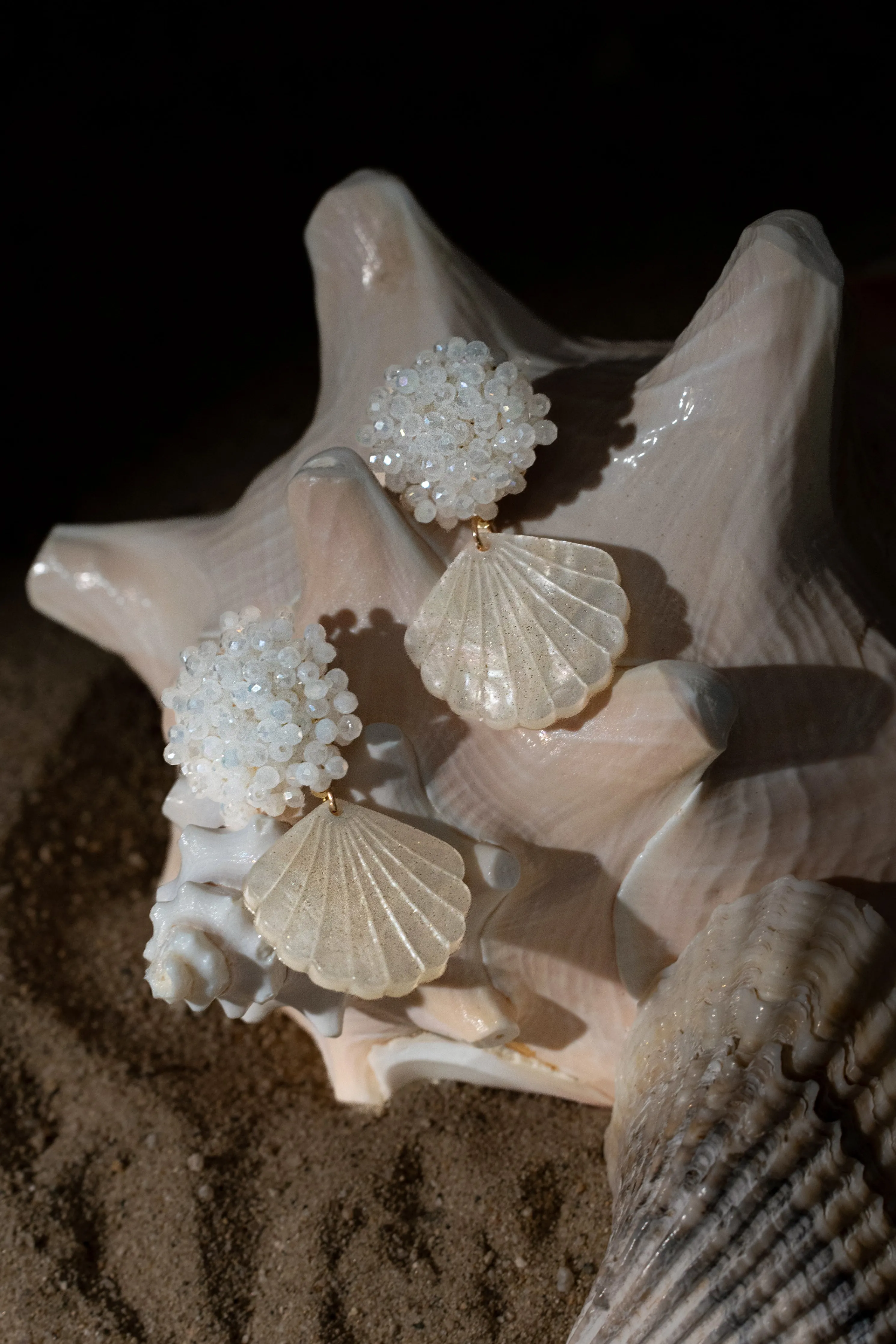 Channel your inner mermaid with our Ivory Seven Seas Dangle Earrings. These exquisite seashell earrings are adorned with a cluster of sparkling iridescent beads, adding an elegant touch to any outfit. Embrace the beauty of the ocean and let these earrings transport you to paradise. Push back closure.