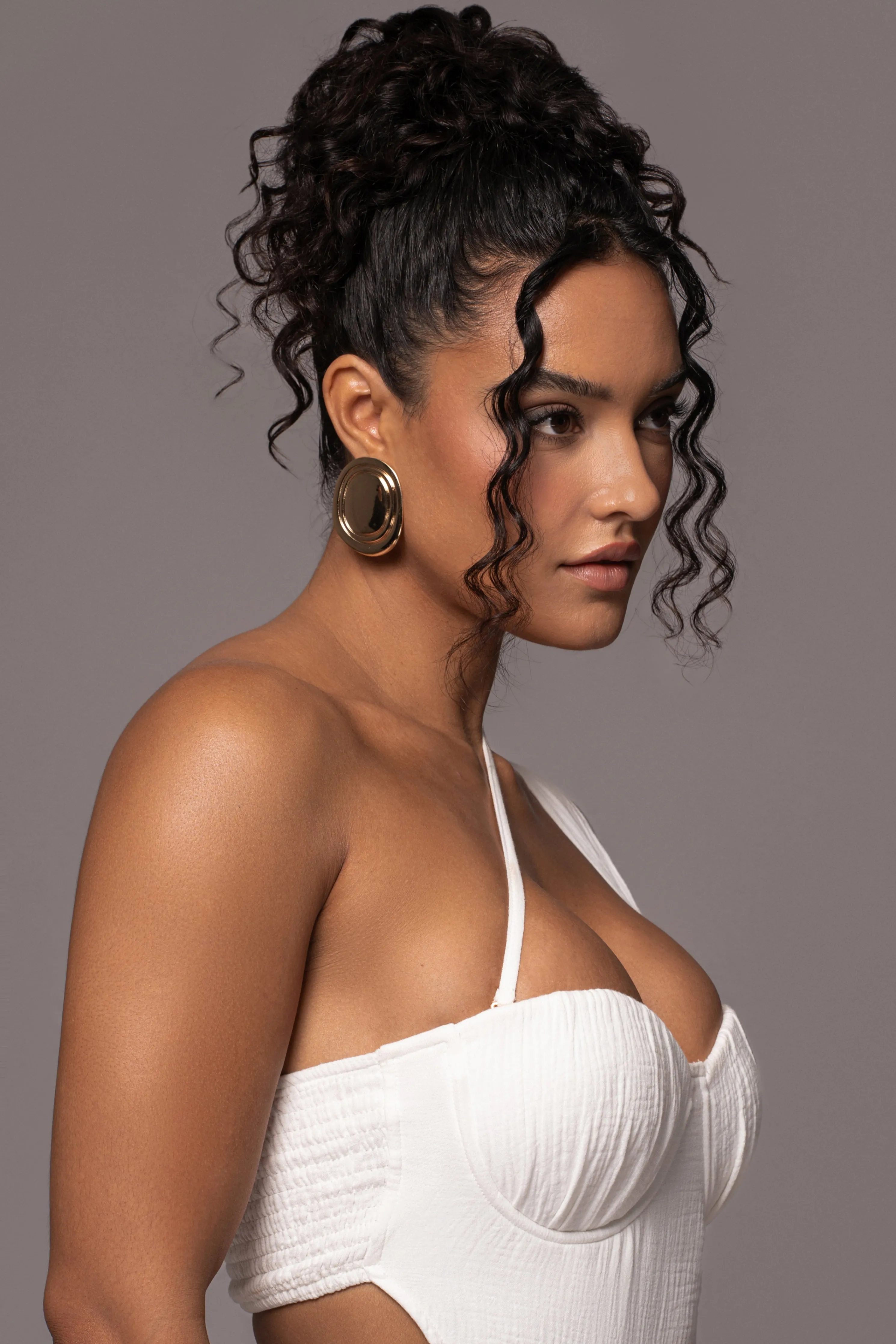 Make a lasting impression this summer in the Natural Scenic One-Shoulder Linen Bodysuit. This smocked bodysuit offers an air of sophistication with its one shoulder neckline, ruched/padded cups, and double snap closure at the bottom for a secure fit. The lower waist of this bodysuit is composed of a smooth doubled lined material for comfort. Pair with our Josette Wide-Leg Pleated Pants for the full look. Stretchy.