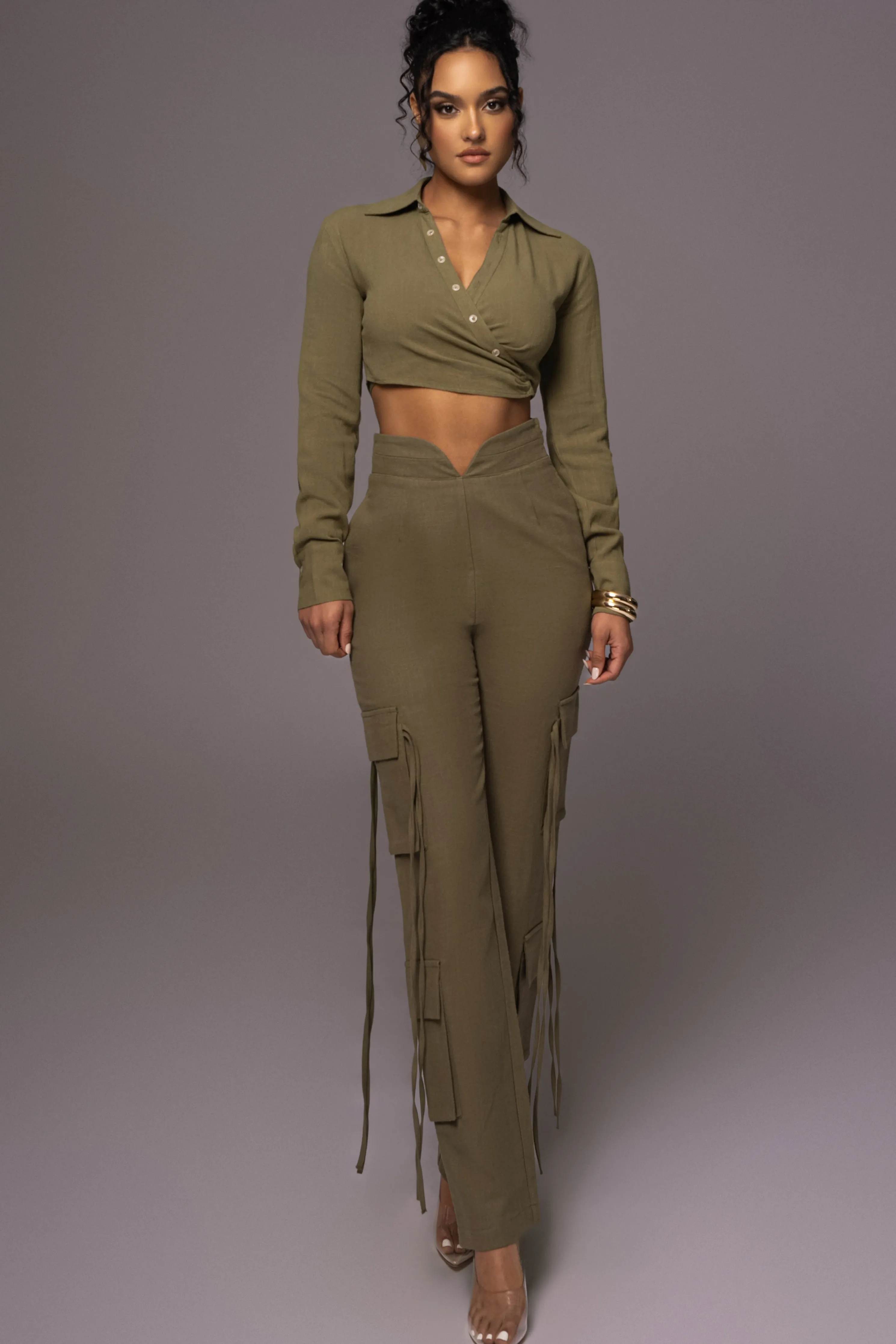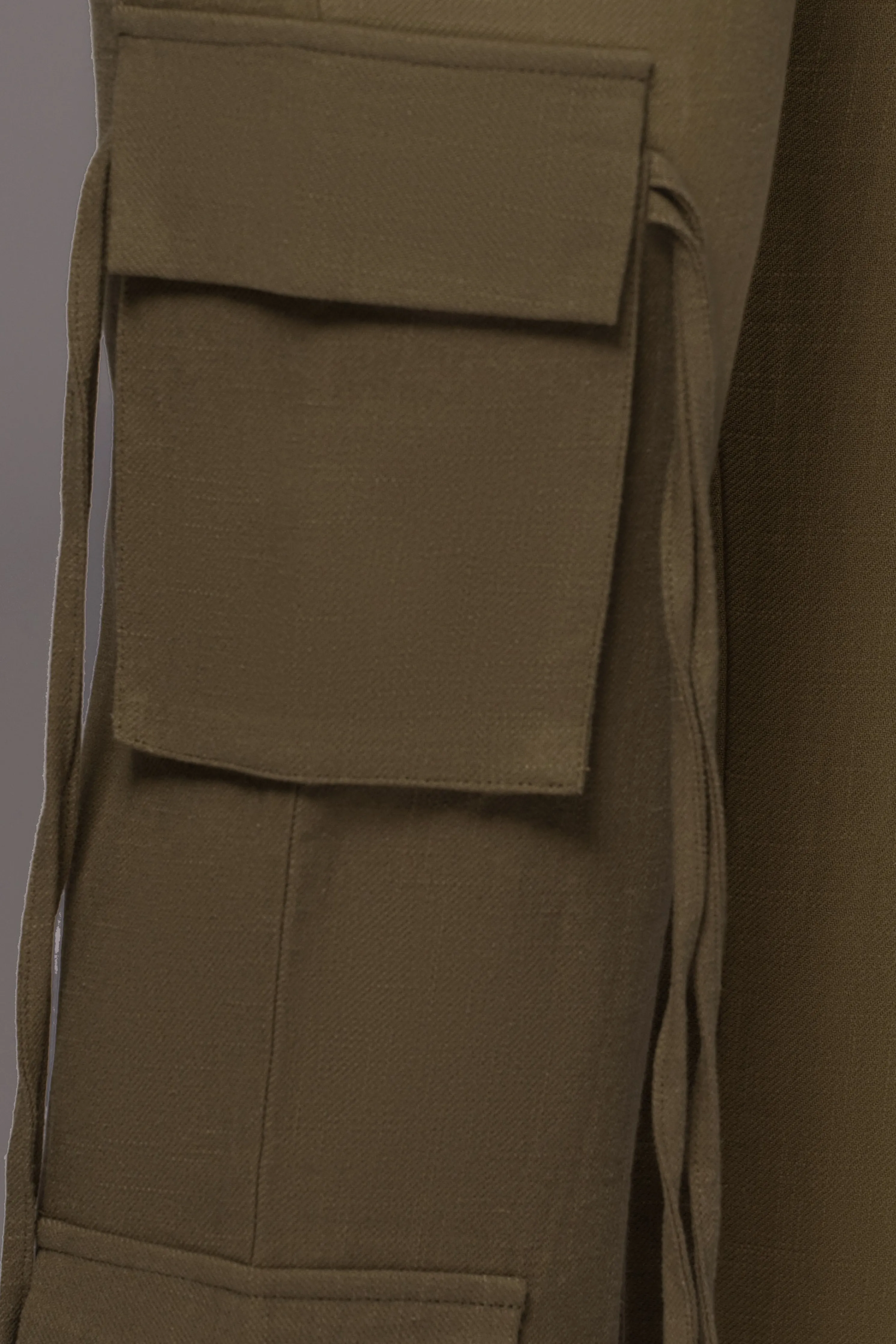 Add a modern twist to your usual cargos with ourOlive Better Half Linen Utility Pants. Crafted from a lightweight linen fabric, these unique cargo pants showcase a front slit waistband with functional cargo pockets and adjustable drawstrings attached to the top pockets. Complete with lined interior and a hidden side zipper closure. Pair with our Drift Away Linen Wrap Topfor the full look. Minimal stretch.