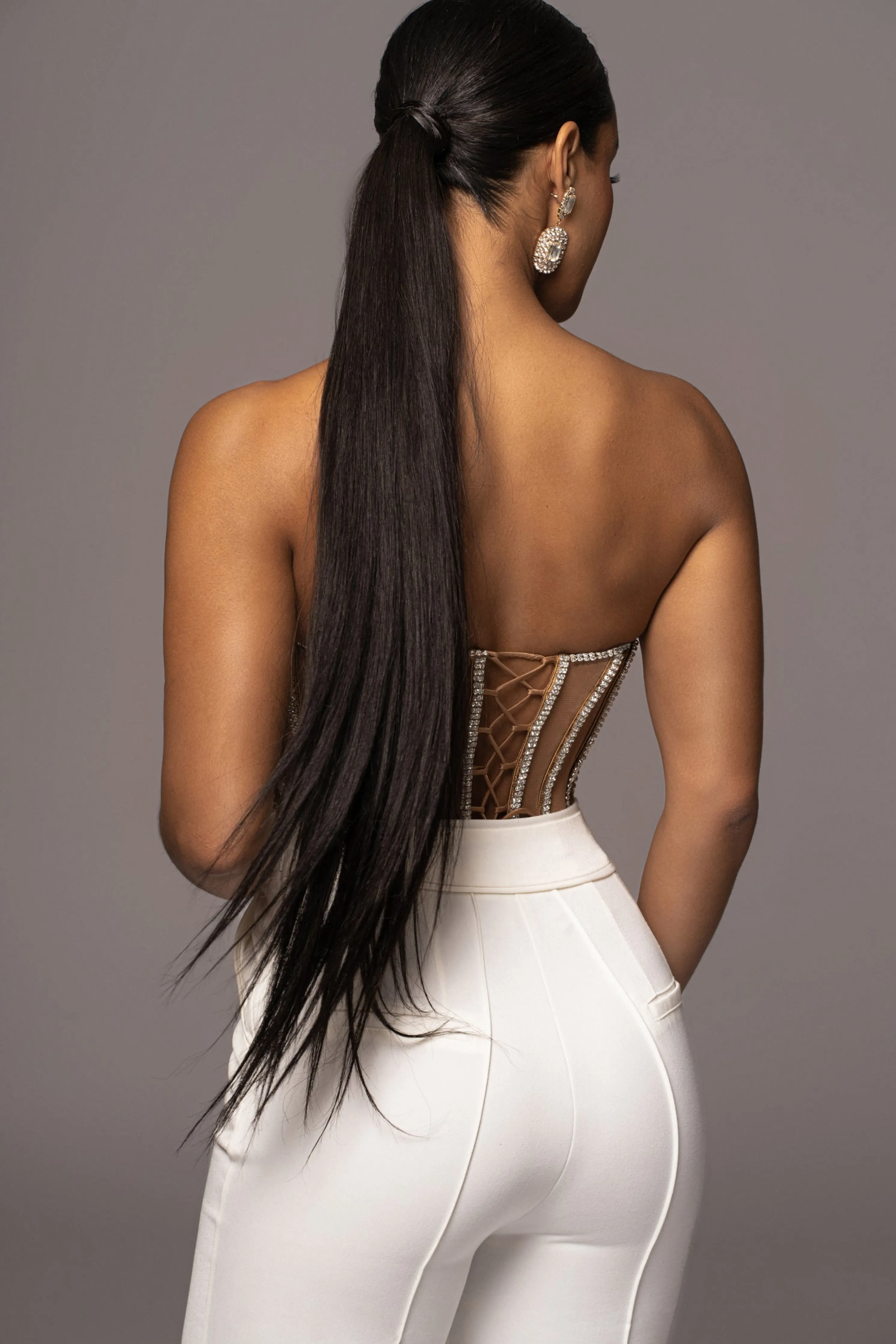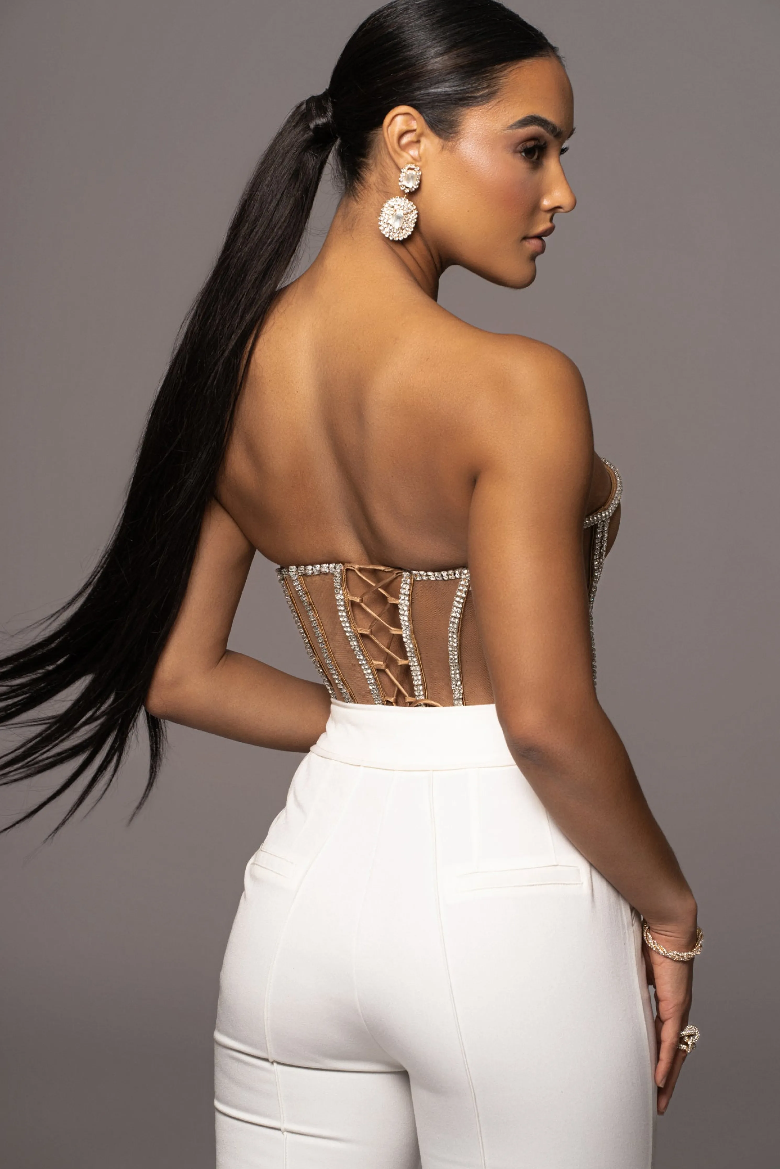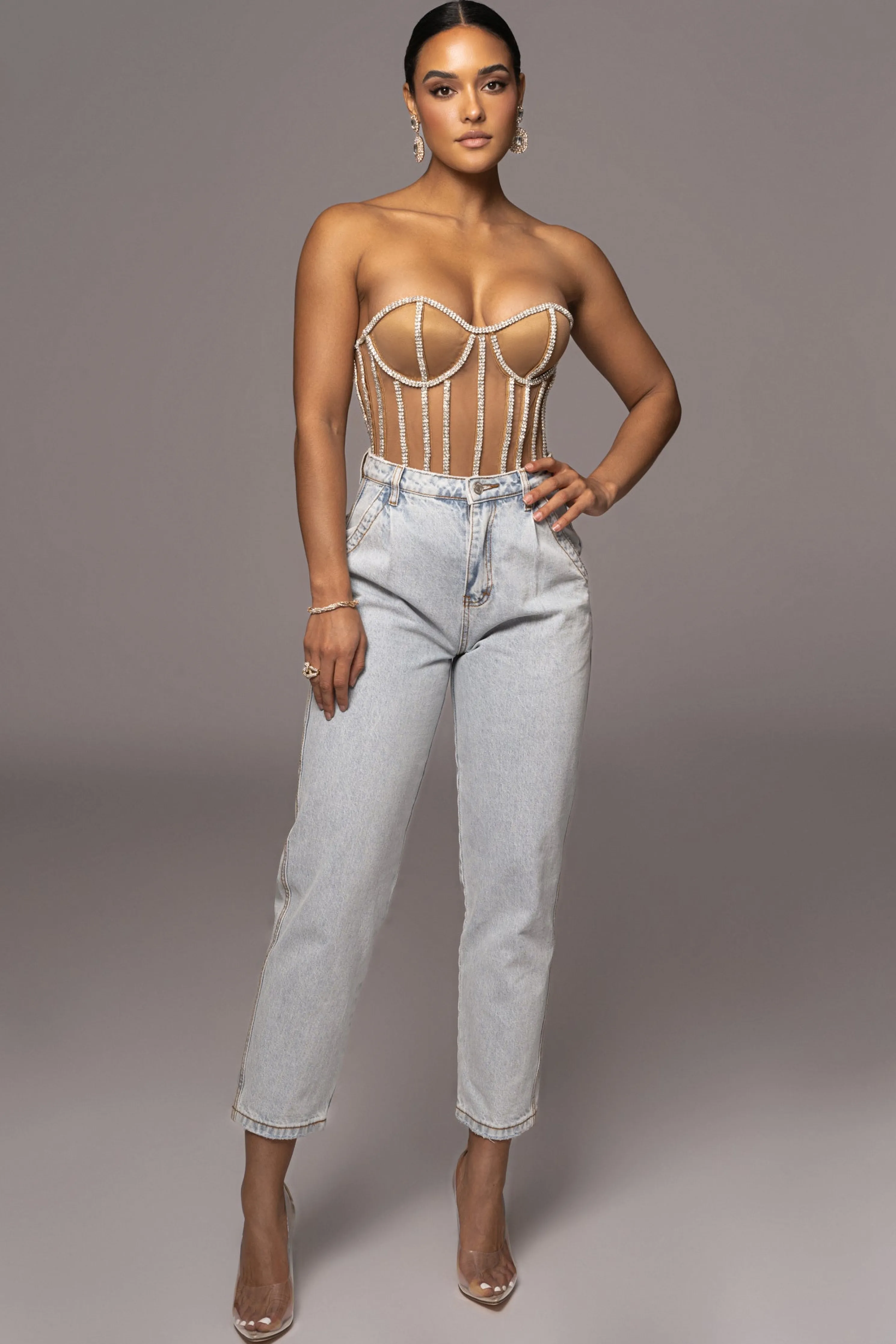 Add sparkle to every celebration inour lavish Limited Edition Rhinestone Crystal Corset! Thisglamorous corsettop is sure to command attention in a delicate design embellished with dreamyrhinestones throughout. Featuring a sweetheart neckline, this corset top comes with a boned bodice, padded/wired cups, and a stunning lace-up back with adjustability. Constructed ofasee-through mesh netting material for a nude illusion. No Stretch.