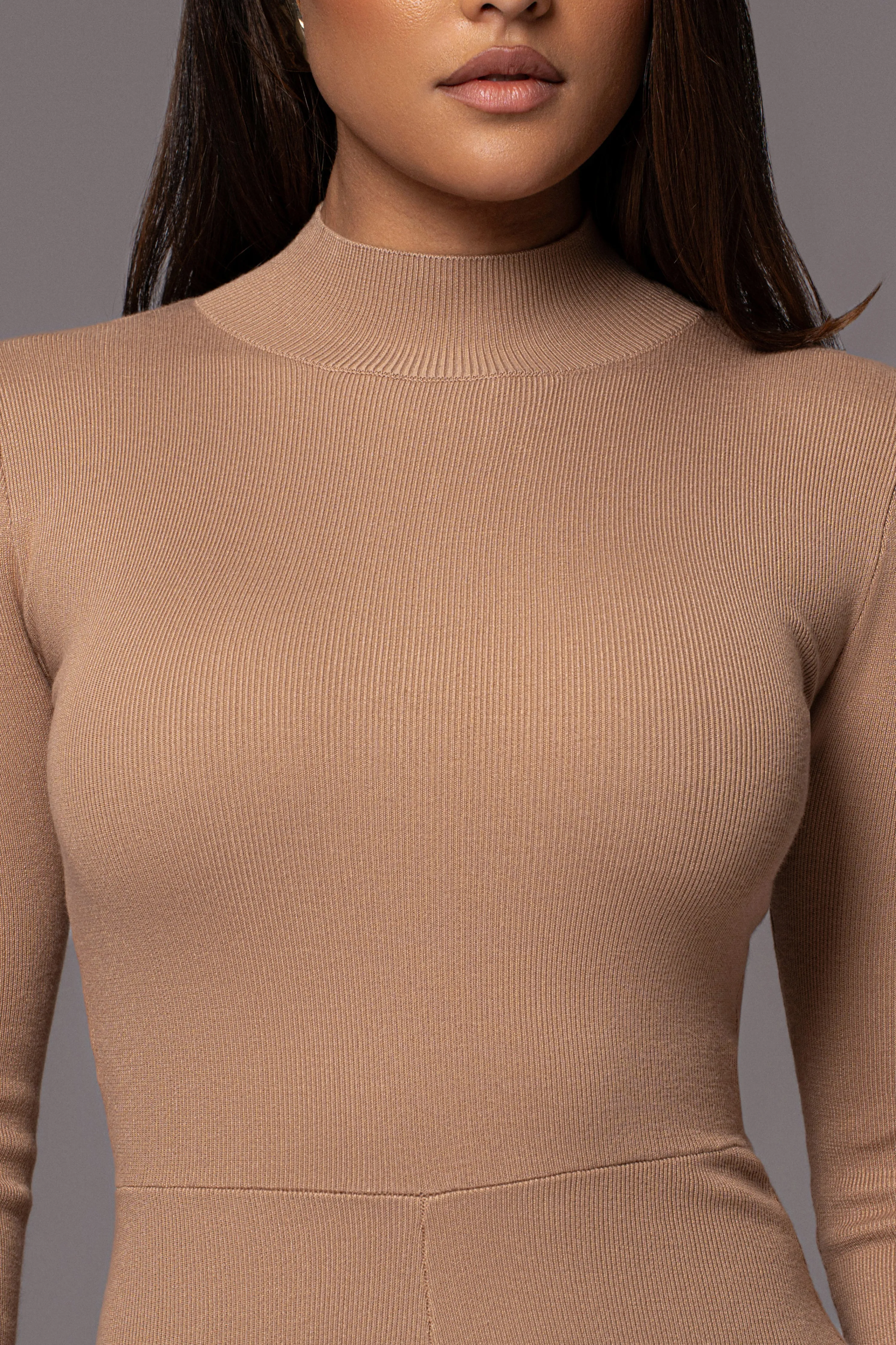 Upgrade your winter wardrobe with theTan Noel Sweater Knit Jumpsuit. This versatile jumpsuit features a cozy mock neck and long sleeves for added warmth, while the straight leg hems and back zipper closure provide a flattering and comfortable fit. Crafted in soft knit fabric, this jumpsuit is the must-have of the season. Single lined. Stretchy.