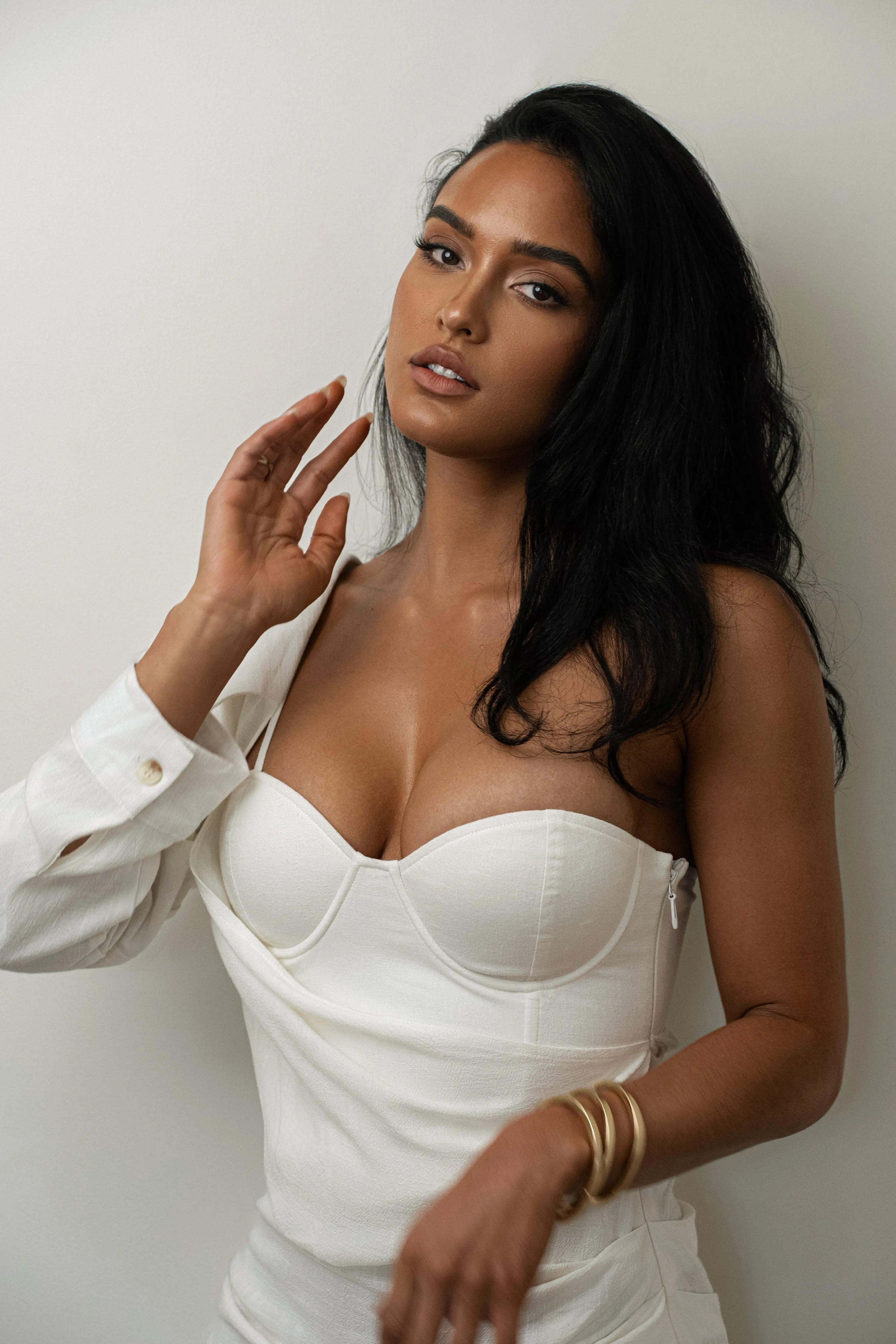 EXCLUSIVELY DESIGNED BY US FOR YOU. Crafted in a Cotton/Linen blend, ourWHITE EVITA LINEN DRAPED DRESS is so flattering you’ll want it in every shade! Featuring a one-shoulder sleeve with half collar detail, this bustier style dress comes with a padded bust, boned bodice for supportive fitting, and roll tab cuffs. A dashing draped detail adorns the lower waist highlighting a side slit. Hidden side zipper for closure. No stretch.