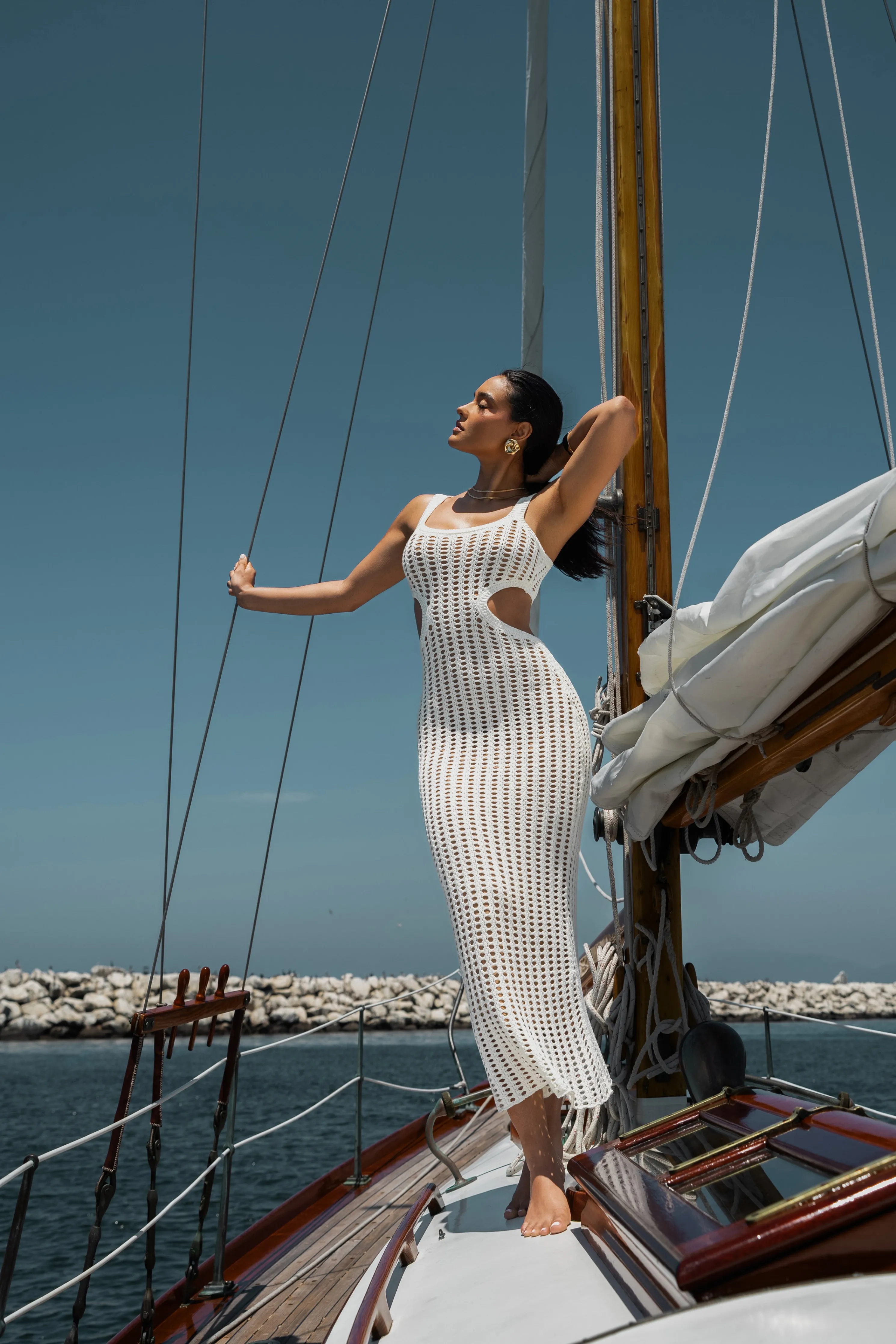 Our new White Melrose Cutout Midi Dress is a staple you’ll never want to slip out of! Designedinsoft crochet knit material, this breezy midi dressfeatures a square neckline withtank shoulder straps, a back cutout, and a beige lined interior giving off a stylish nude illusion. Stretchy.